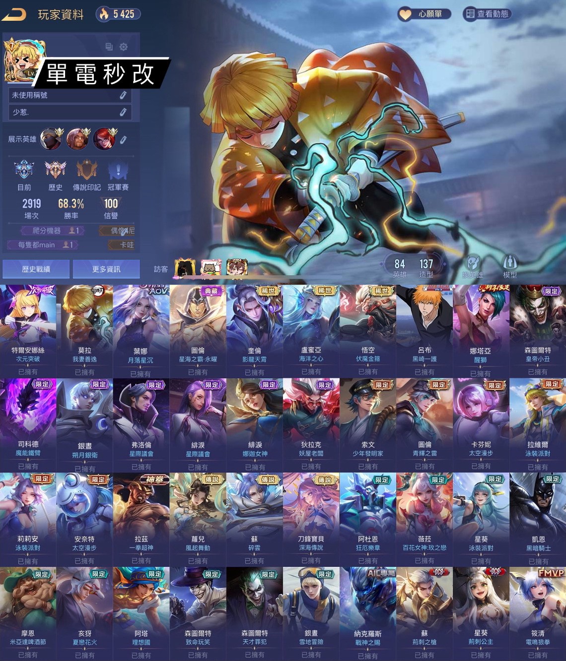 帳號 【G帳手機可改信箱未綁、星耀、V10、84英、137造】 🔥特爾次元🔥善逸🔥永曜🔥月落🔥影龍 朔月 魔能司科德 星際弗洛倫 緋淚