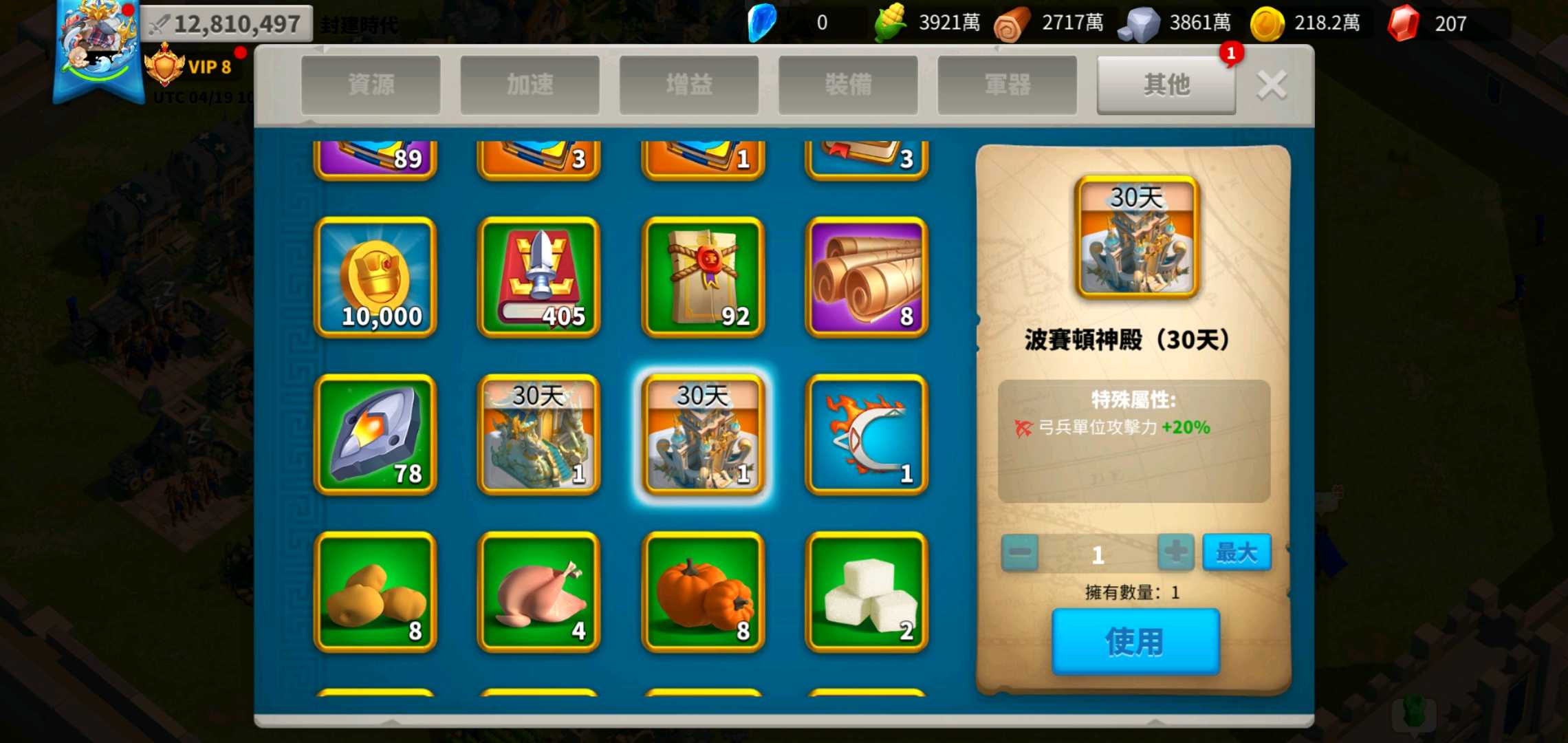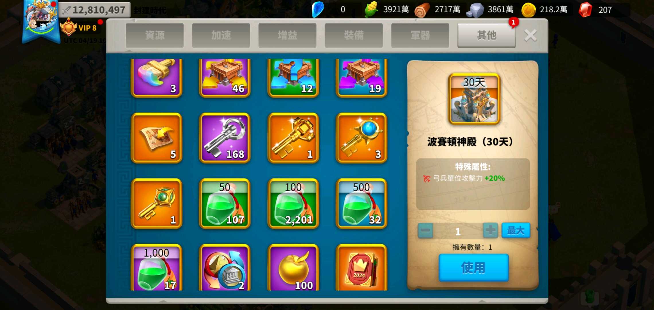 【初始號】【25等】賣台服25等*4隻,總共有389.5E資源包,永久弓堡生命+15,體力卷軸多