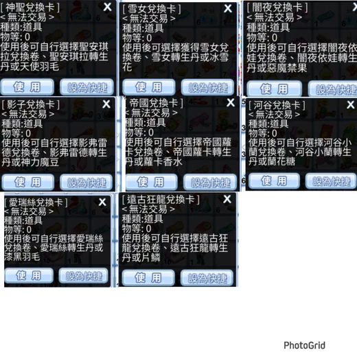 使用後可自行選擇愛瑞絲兌換卷、愛瑞絲轉生丹或漆黑羽毛