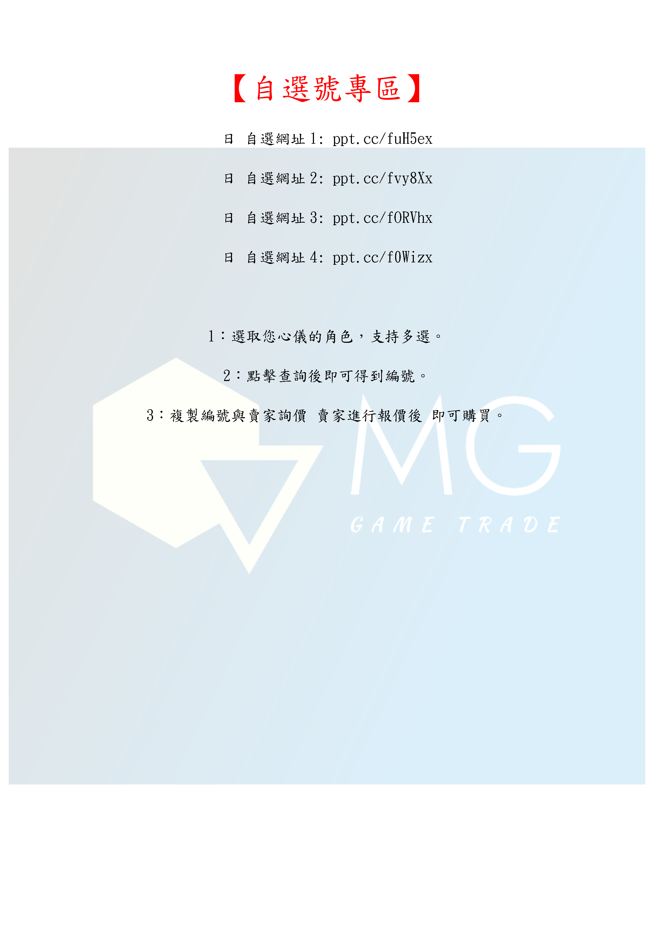 帳號 【初始號】 【MG數碼】 台服 日服 亞服 美服 多石號 初始號 自抽號 自選號 自選組合