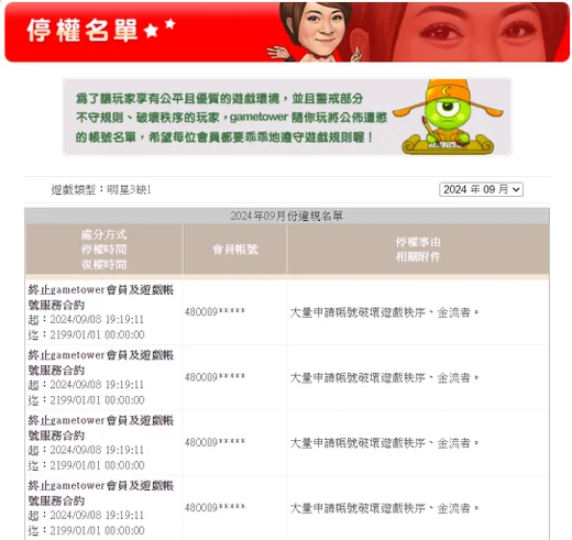 3.同IP遊玩太多帳號、洗幣(大量申請帳號破壞遊戲秩序、金流者)