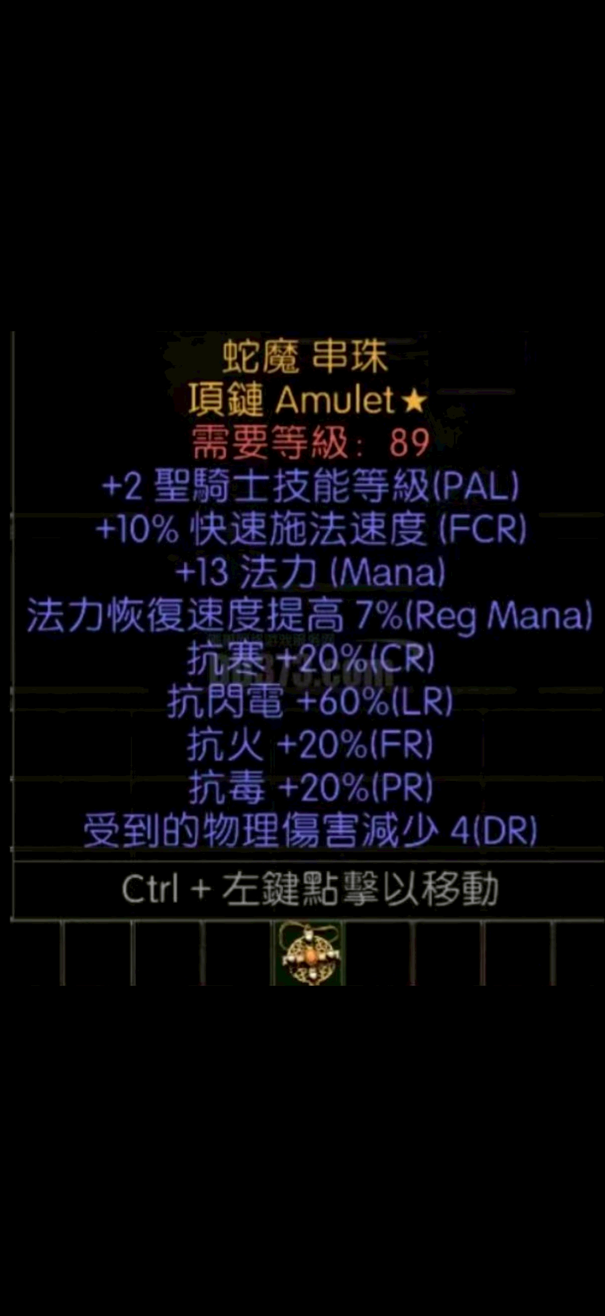 手工項鍊,2聖騎士技能,10施法,20全抗,60電抗,4減少傷害