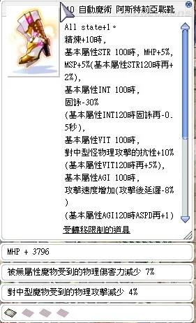 +10阿斯特莉亞戰靴[歐內斯特傑克]/HP3700/抗中4%/無屬性魔物7%