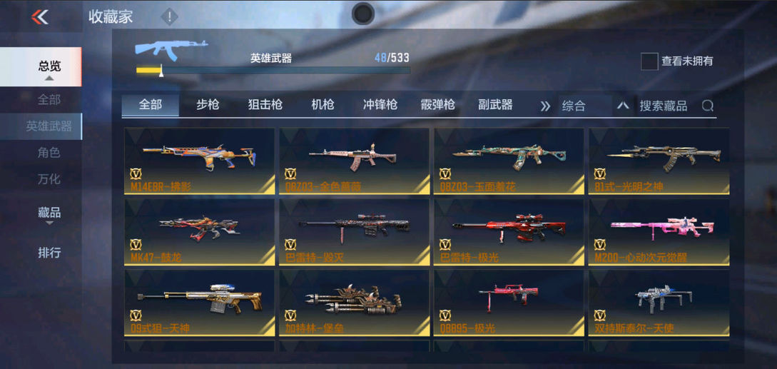 81式-光明之神,巴雷特-毀滅,巴雷特-極光,AK47-無影,M4A1-雷神,QBZ03-金色薔薇,M4A1-運輸船,AK47-血武士,09式狙-天神,M200-心動次元覺醒,9A91-天神,加特林-堡壘,地獄火,KSG-火力競放,CZS2-心動次元,CZS2-心動次元覺醒,左輪-黑武士,沙鷹-修羅,馬來劍-毀滅,USP-神罰,血陽,黑騎士煙霧彈,死神手雷