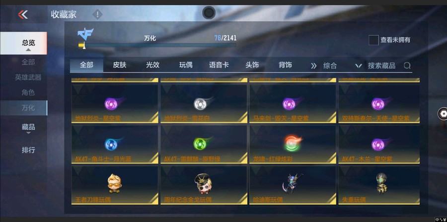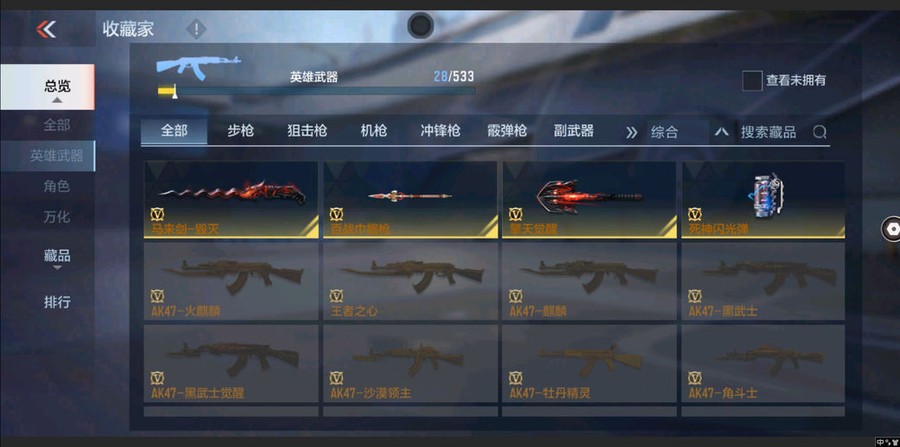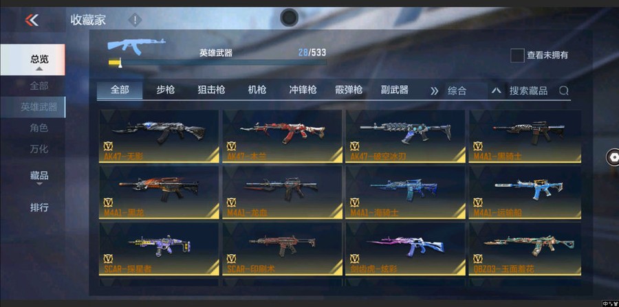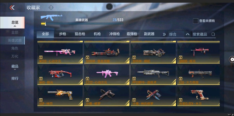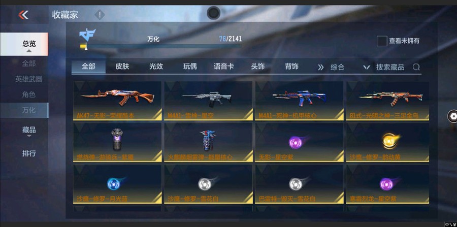 AK47-木蘭,M4A1-黑騎士,M4A1-黑龍,AK47-無影,MK5-極光,M4A1-運輸船,M4A1-龍血,M4A1-海騎士,劍齒虎-炫彩,SCAR-探星者,M200-心動次元,CZS2-心動次元,加特林-堡壘覺醒,KSG-火力競放,加特林-蟒蛇,沙鷹-修羅,擎天覺醒,馬來劍-毀滅,USP-神罰,死神閃光彈