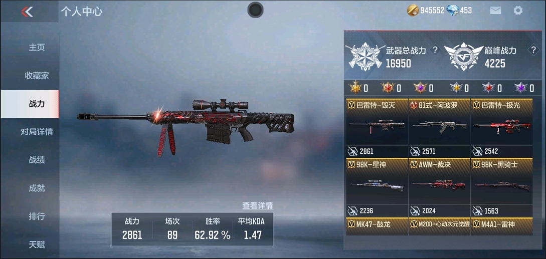 【編號91633】【1王者 王者之獄 81阿波羅 】【152V-75級-V2-1角色V】AWM-裁決 巴雷特-極光-千變 M200-心動次元覺醒 AK47-幸運日覺醒 AK47-破空冰刃 M4A1-雷神-千變 關小雨