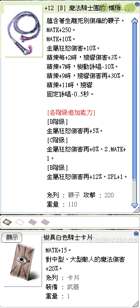 道具 +13 懺悔榮耀冠冕 高階薩納雷 +12懺悔覺醒刃鞭