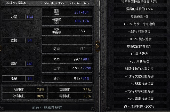 衣服:頂20冰奧瑪斯(+3暴風雪/鑲55死冰) 70+10+20