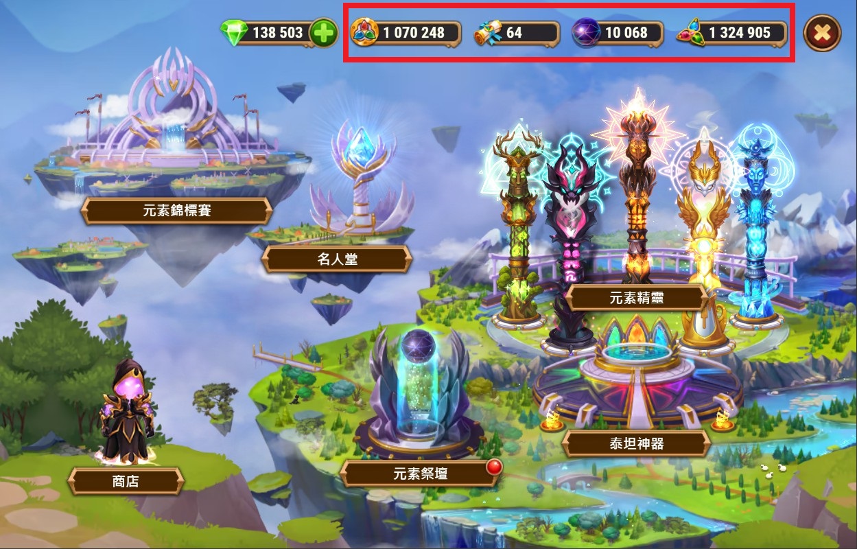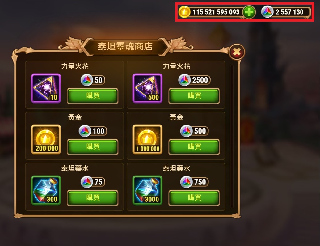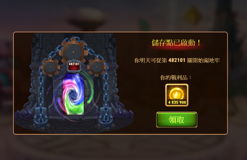 金幣1555e(接近無限/泰坦靈魂幣255萬) 地牢近50w關卡(每打10關拿300-500w金幣)