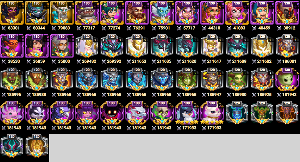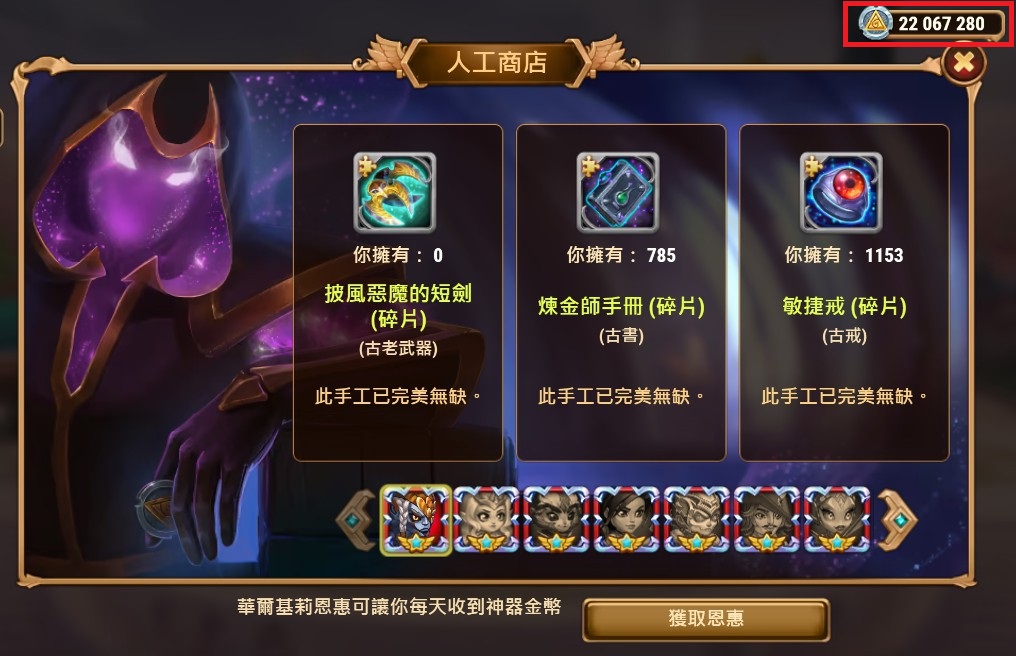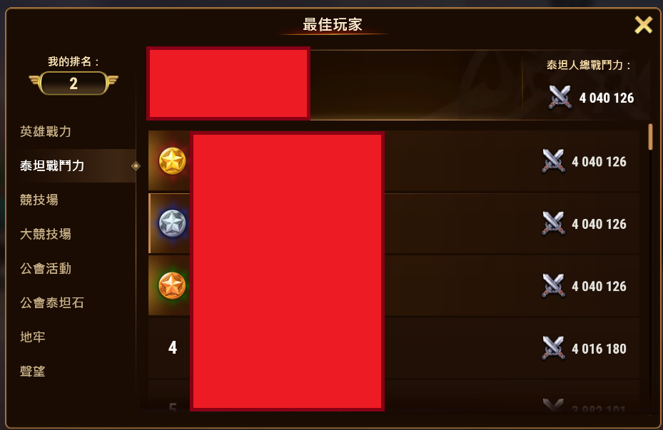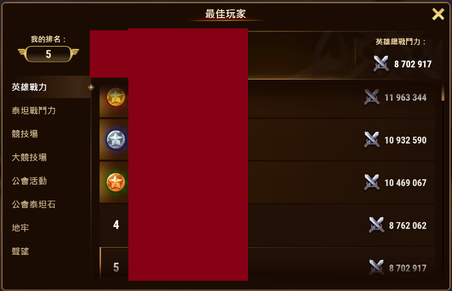 小號:英雄總戰力303萬 泰坦150萬(9圖騰) 原始189服 目前在89服參戰