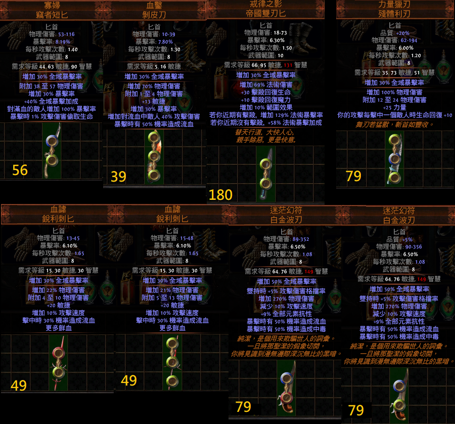 道具 【拓荒】 『匕首』白風、戒律、艾爾、蠶食、寒鋼、迷茫、砥礪、裂心、廚刀、祝融、隱藏