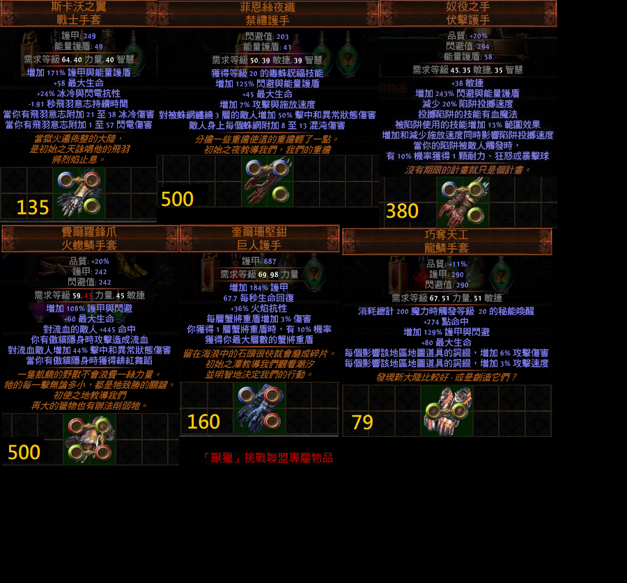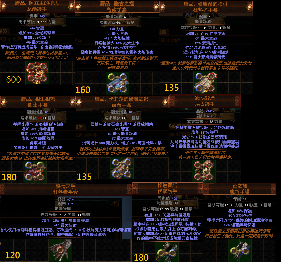 道具 【拓荒】 『手套』闇核、偷息、漆黑、馬雷、怨恨、悖逆、詭計、厄斯、陵拳、虛空、夜織