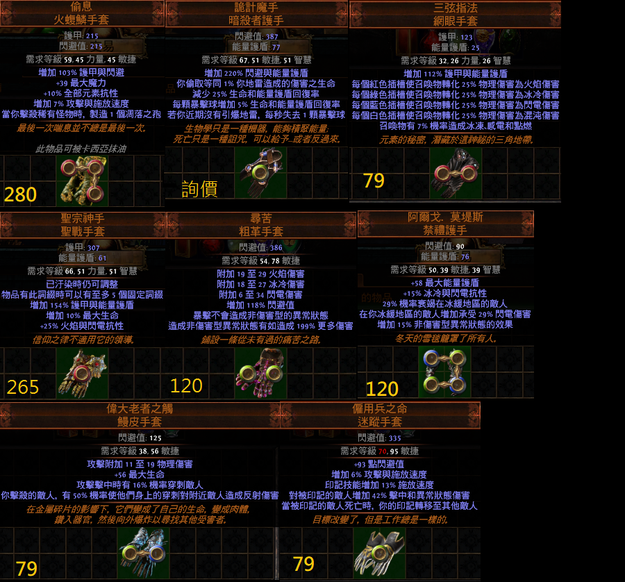 在交易時請放上一件您不需要的物品。例如武器、防具、技能石、地圖、材料、捲軸....等等
