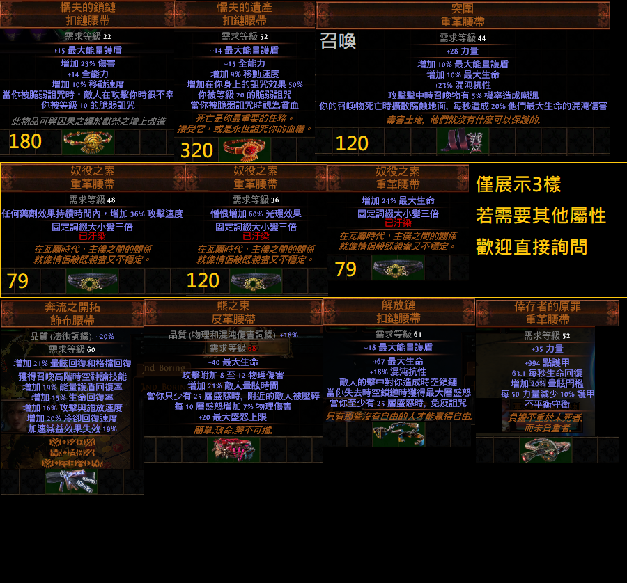 道具 【拓荒】 『腰帶』真理、巨岩、熊之、懦夫、游牧、盛宴、魔血、祭品、智勇、獵首、熊之