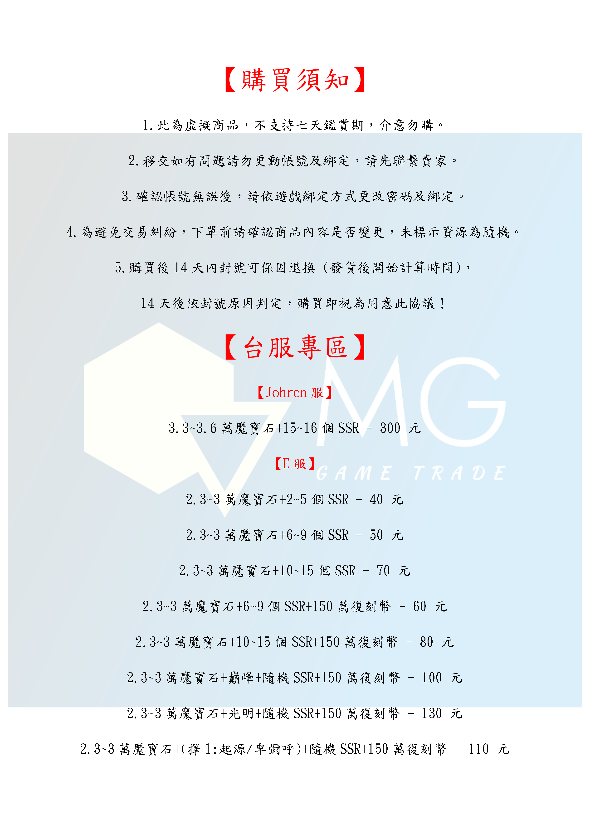 5.購買後14天內封號可保固退換 (發貨後開始計算時間),