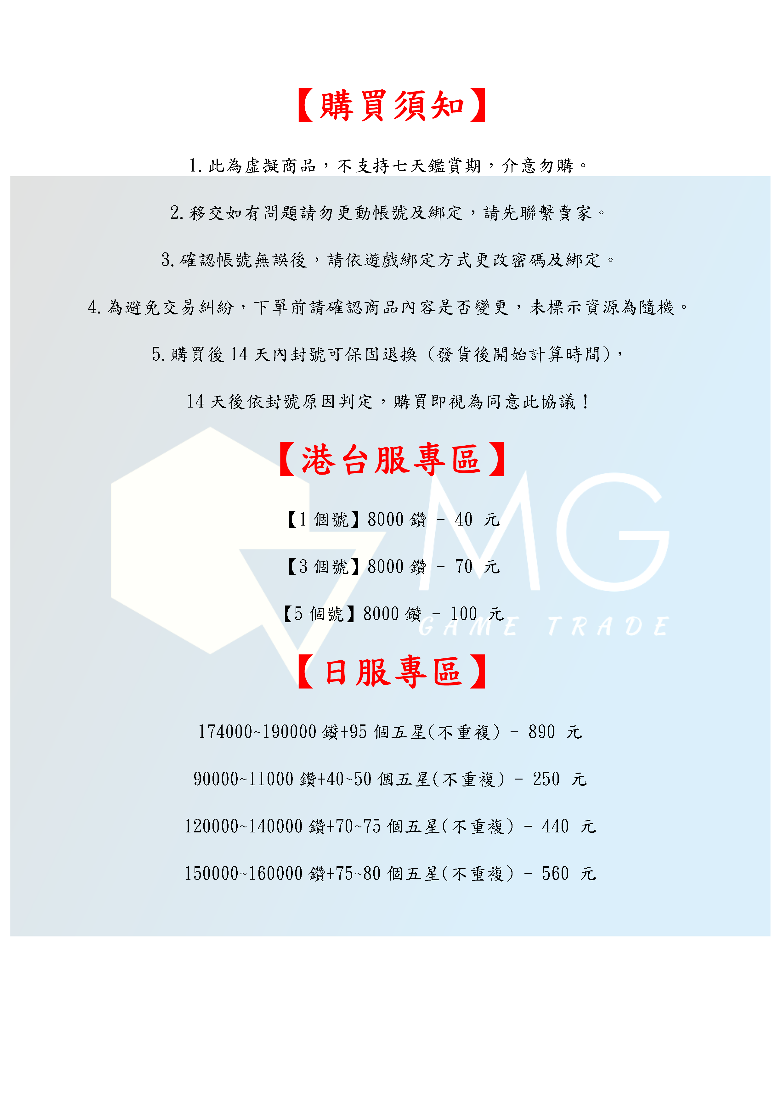 帳號 【初始號】 【MG數碼】 台服 日服 多石號 多鑽石號 初始號 自抽號 自選號 自選組合