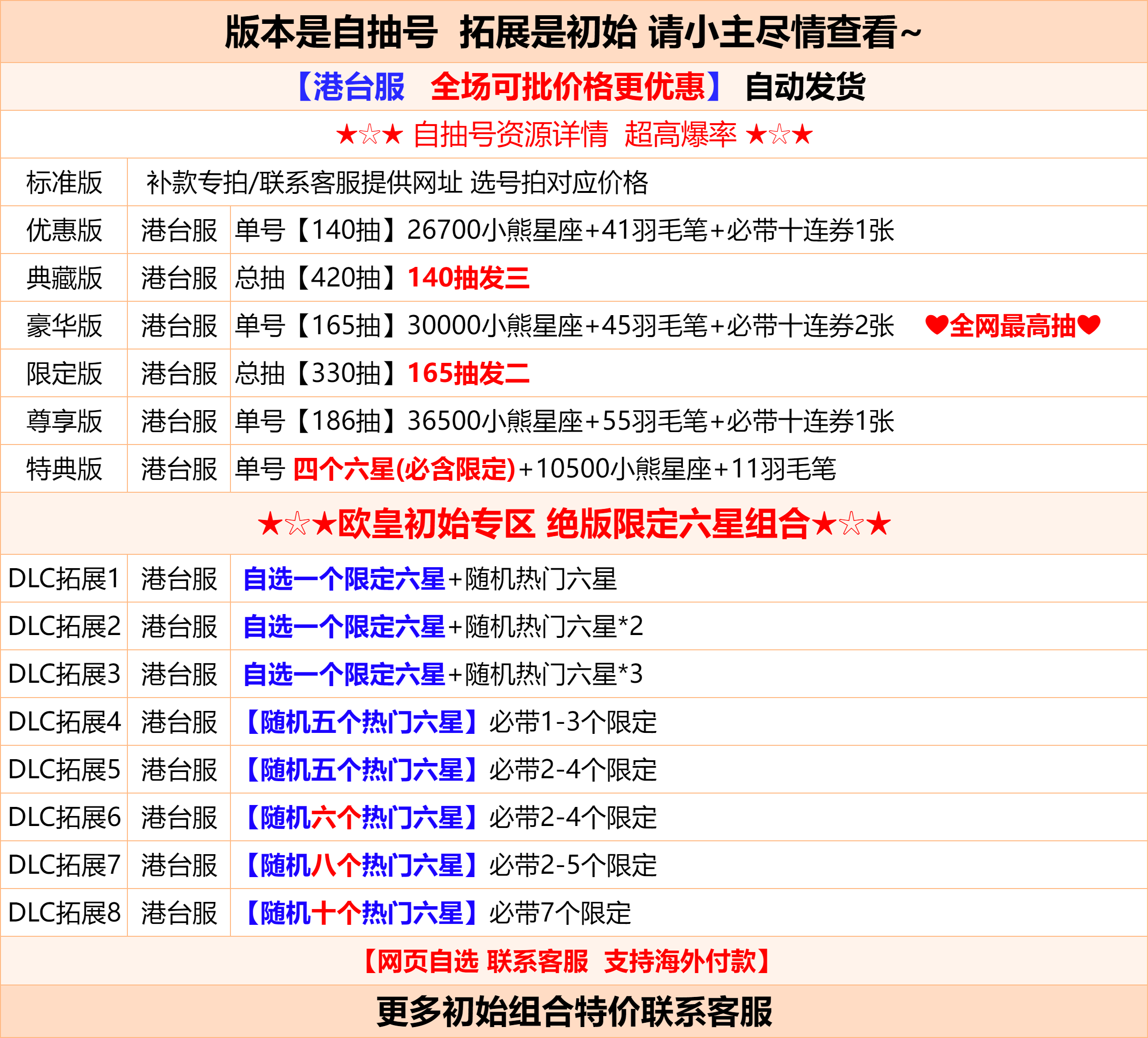 遊戲帳號內容已清楚打出來 沒打出來的皆為隨機附送 不要自己亂加東西 資源 再說帳號上怎沒有 後續出現問題 一律以賣家公布為主 介意勿買