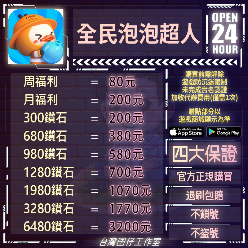 代儲【6480鑽石=3200元】 🏆24H客服🏆現貨秒出🔥台灣囝仔🔥全民泡泡超人陸服🔥人臉辨識實名認證
