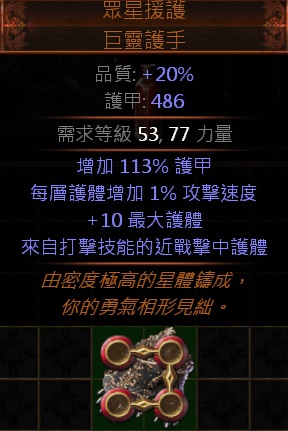 道具 拓荒者👌傳奇→眾星援護.巨靈護手(打擊技能護體 +10最大護體效果 )