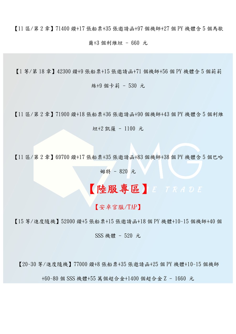 【初始號】【MG數碼】 日服 陸服 多石號 多鑽石號 初始號 自抽號 自選號 自選組合