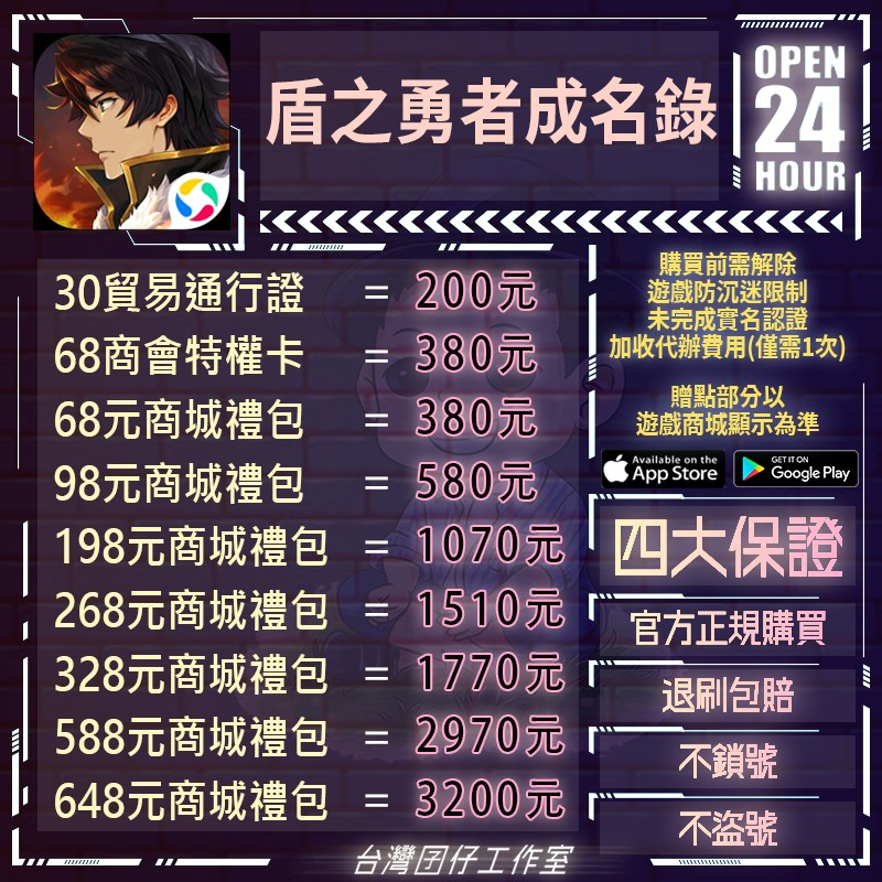 代儲【648元商城禮包=3200元】 🏆24H客服🏆現貨秒出🔥台灣囝仔🔥盾之勇者成名錄陸服🔥實名認證