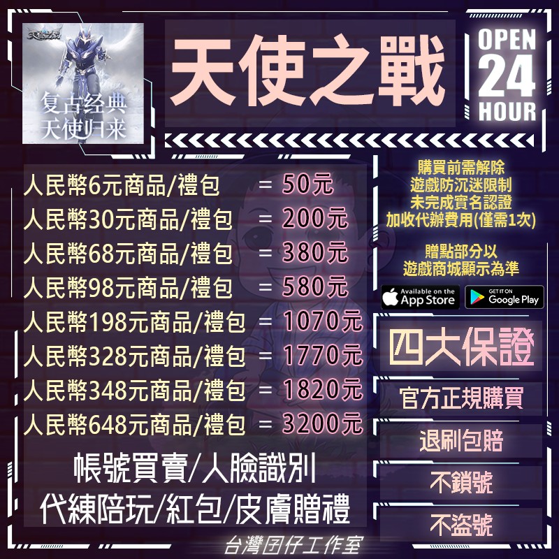 代儲【人民幣30元商品=200元】 🏆24H客服🏆現貨秒出🔥台灣囝仔🔥天使之戰陸服🔥實名認證