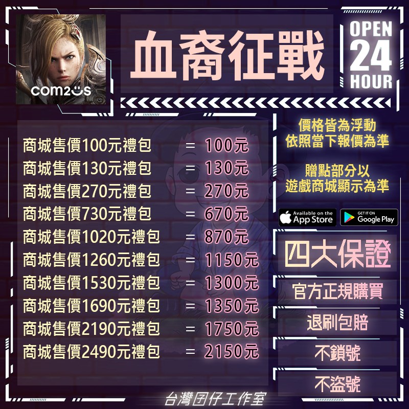 6.台灣囝仔台陸手遊代儲,純粹提供代儲服務並收取服務費,無賺取中間差價