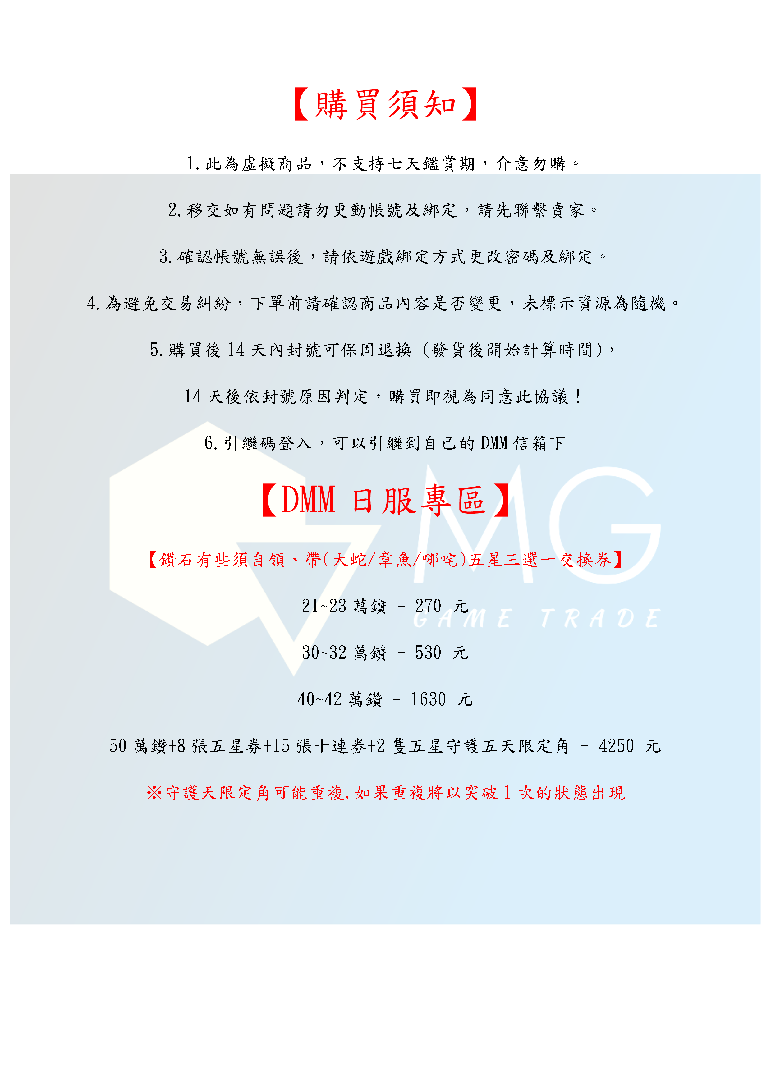 帳號 【初始號】 【MG數碼】 日服 多石號 多鑽石號 初始號 自抽號 自選號