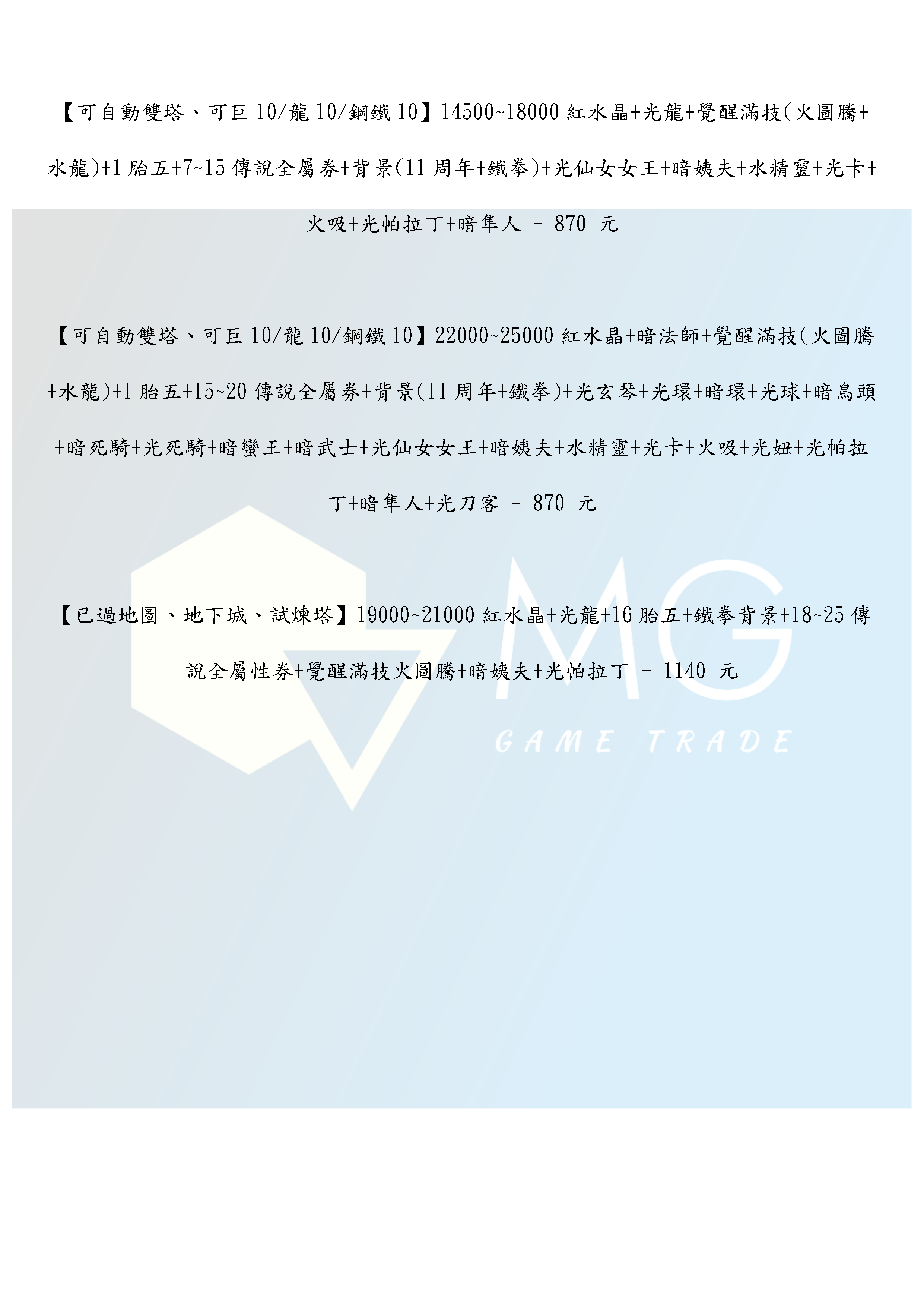 帳號 【初始號】 【MG數碼】 國際服 陸服 多石號 多鑽石號 初始號 自抽號 自選號