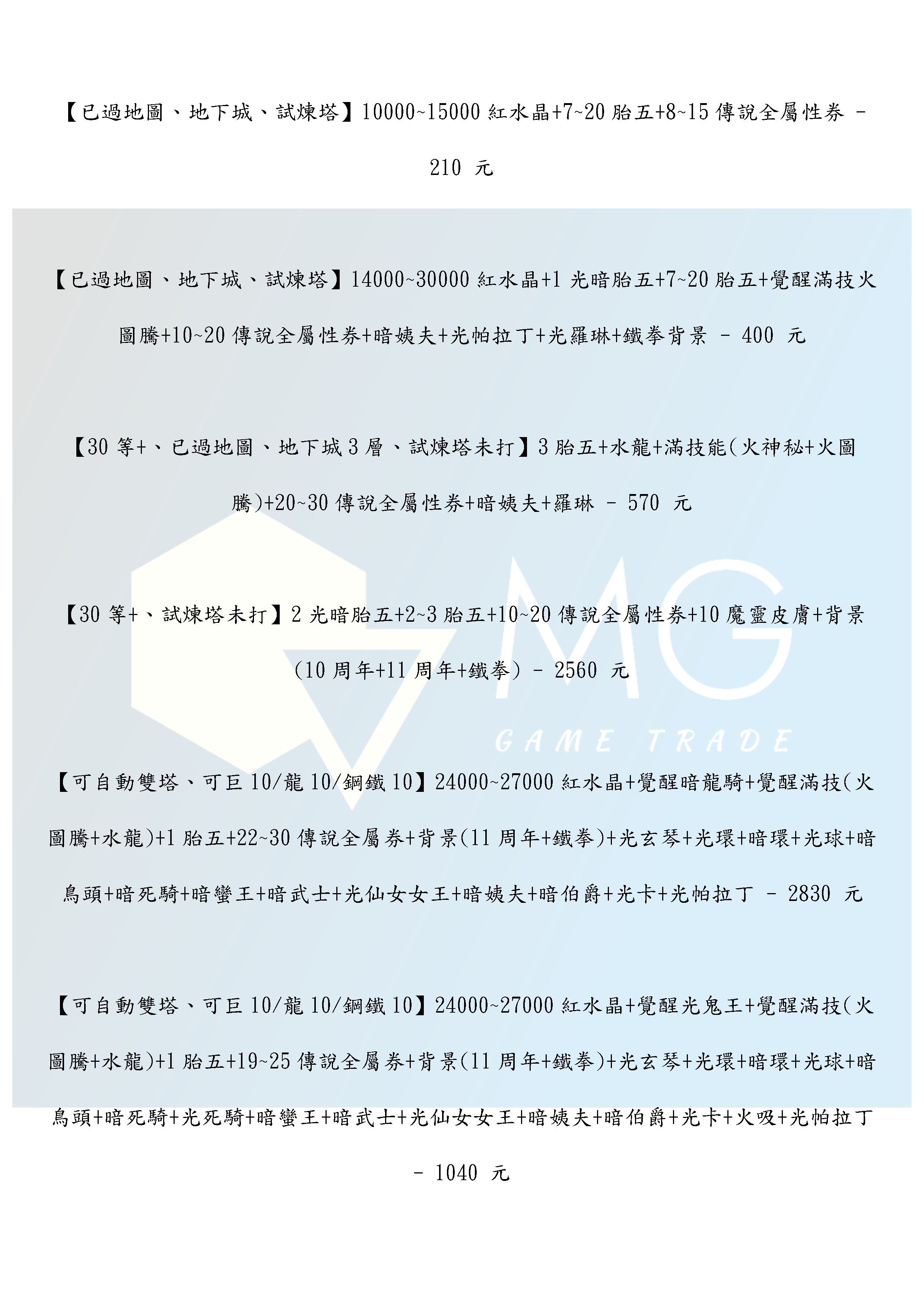 帳號 【初始號】 【MG數碼】 國際服 陸服 多石號 多鑽石號 初始號 自抽號 自選號