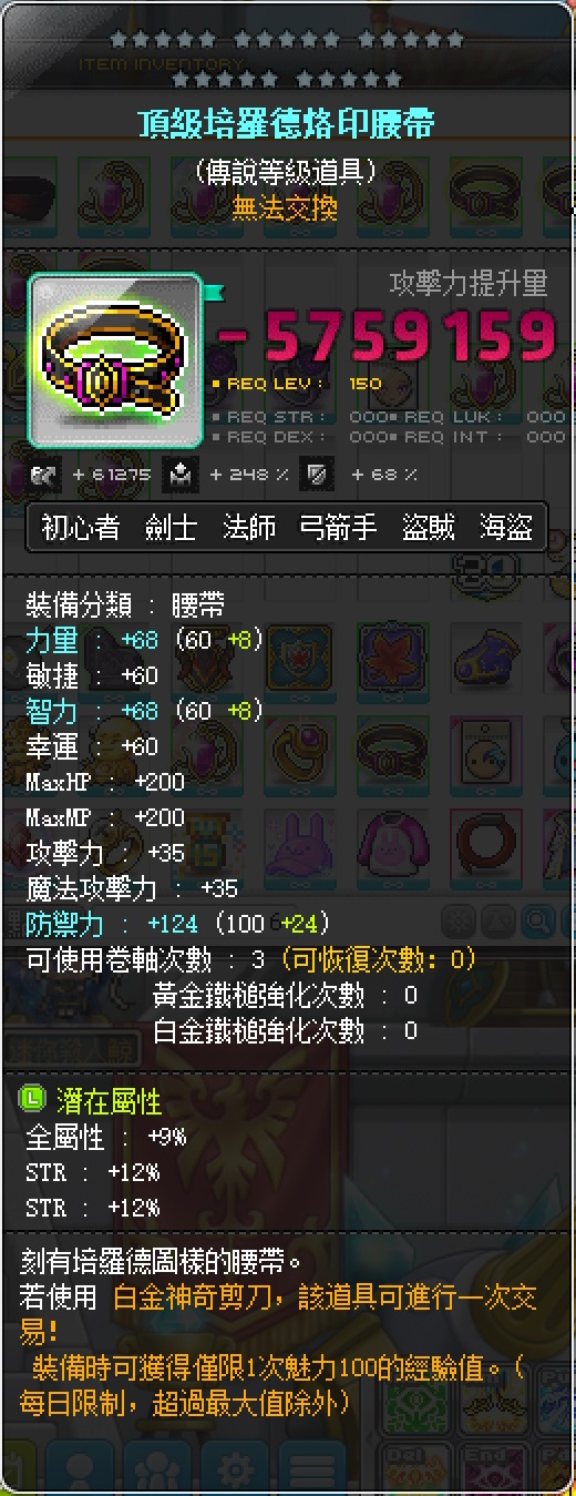 道具 【頂級培羅德腰帶】 【IZCR】頂級培羅德腰帶 33% 力量 『A13』