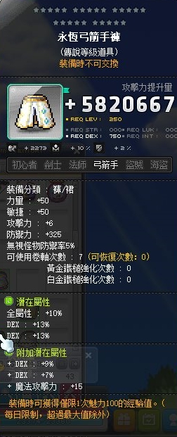 道具 【永恆弓手褲】 36%敏(含10全)/附加97敏/ 永恆弓箭手褲(36/97敏永恆弓褲)