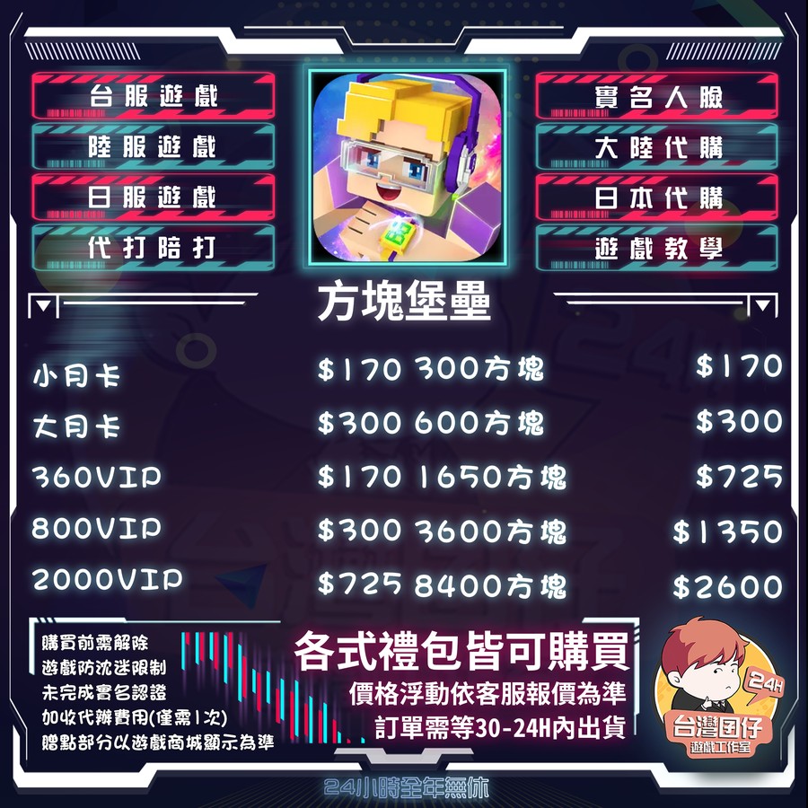 代儲【小月卡=170元】 🏆方塊堡壘代儲🏆24H客服🔥現貨秒出🔥台灣囝仔🔥退刷包賠