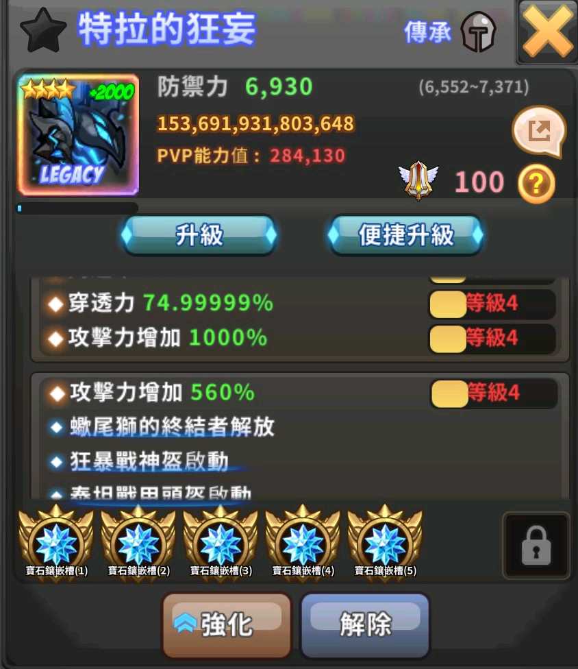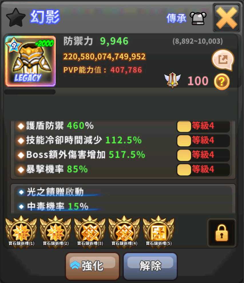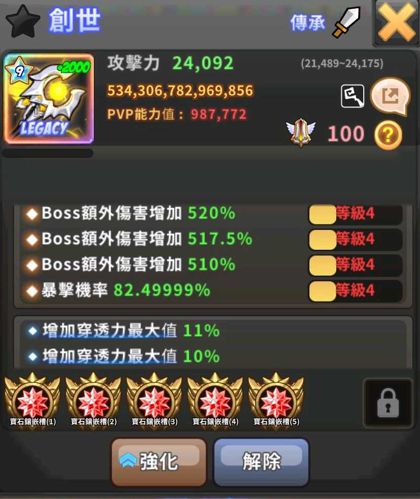 傳承裝備四件能力客製化(需耗時1~7天不等)