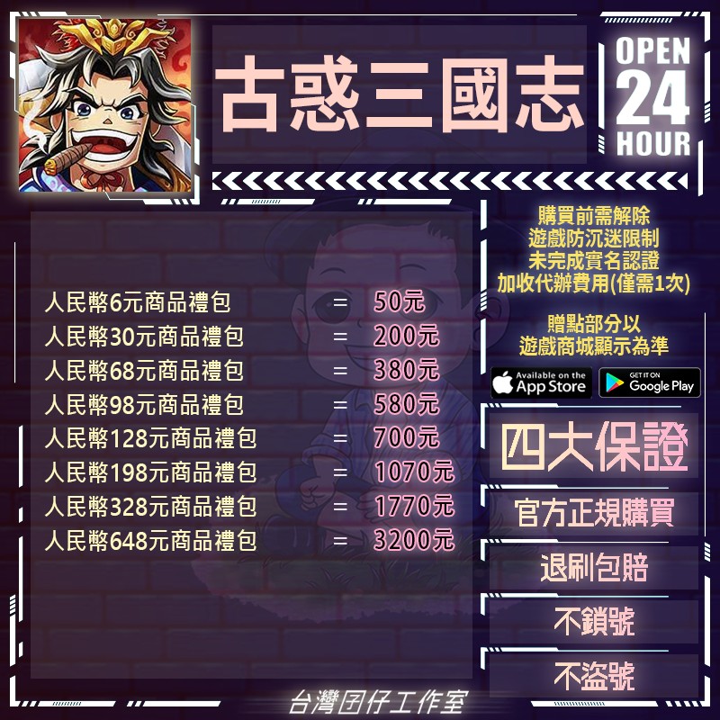 代儲【人民幣30元商品禮包=200元】 🏆24H客服🏆現貨秒出🔥台灣囝仔🔥古惑三國志陸服🔥20萬保證金