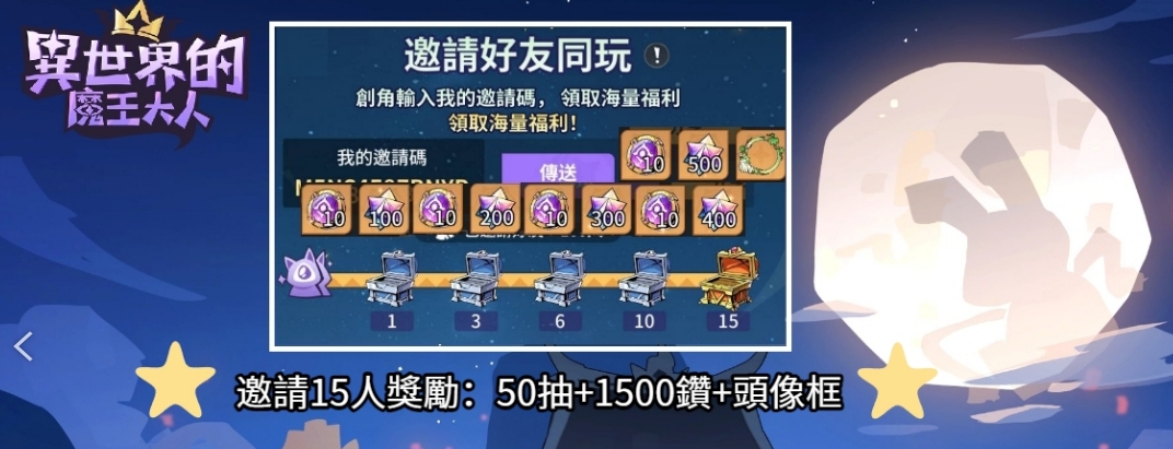 ✅可直購或加購→⭐邀請15人獎勵100T:50抽+1500鑽+頭像框(如圖)⭐