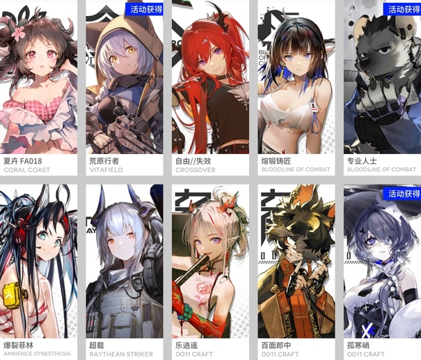 安哲拉,斷崖,雪雉,和絃,暴行,灰喉,掠風,梅爾,普羅旺斯,桑葚,特米米,拜松,極境,獅蠍,阿米婭,隱現,烏有,絮雨,石棉,風丸,雪絨,凜冬,吽,德克薩斯,戰車,暮落,閃擊,空構,衡沙,羅賓,苦艾,烈夏,星極,綺良,濯塵芙蓉,槐琥,格勞克斯,龍舌蘭,九色鹿,格拉尼,耶拉,星源,火神,幽靈鯊,崖心,溫米,初雪,賈維,天火,驚蟄,莎草,洛洛,寒芒克洛絲,玫拉,葦草,謎圖,灰毫,可頌,空,錫蘭,藍毒,白麵鴞,四月,布洛卡,華法琳,貝娜,哈洛德,亞葉,蝕清,蜜蠟,臨光,霜華,紅,雷蛇,送葬人,夜半,隕星,柏喙,鐸鈴,火龍S黑角,截雲,食鐵獸,車爾尼,見行者,因陀羅,青枳,子月,夜魔,深律,蒼苔,暴雨,月禾,熔泉,折光,拉普蘭德,芙蘭卡,詩懷雅,愛麗絲,明椒,洋灰,真理,巫戀,炎獄炎熔,火哨,夏櫟,承曦格雷伊,萊恩哈特,炎客,赤冬,鑄鐵,赫默,懾砂,燧石,極光,鞭刃,寒檀,海蒂,蜜莓,野鬃,埃拉託,但書,薄綠,微風,守林人,卡夫卡,圖耶,奧斯塔,白金,羽毛筆,稀音,摩根