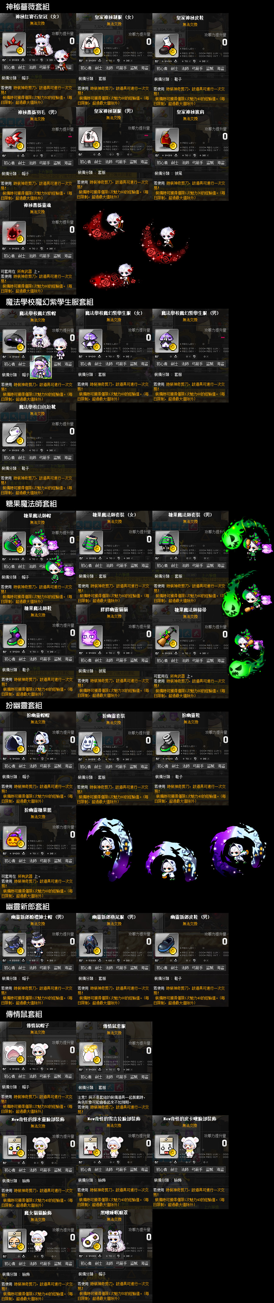 糖果魔法師套組 (帽子+套服(男或女)+鞋子+披風+武器):5件 整套1400T含刀