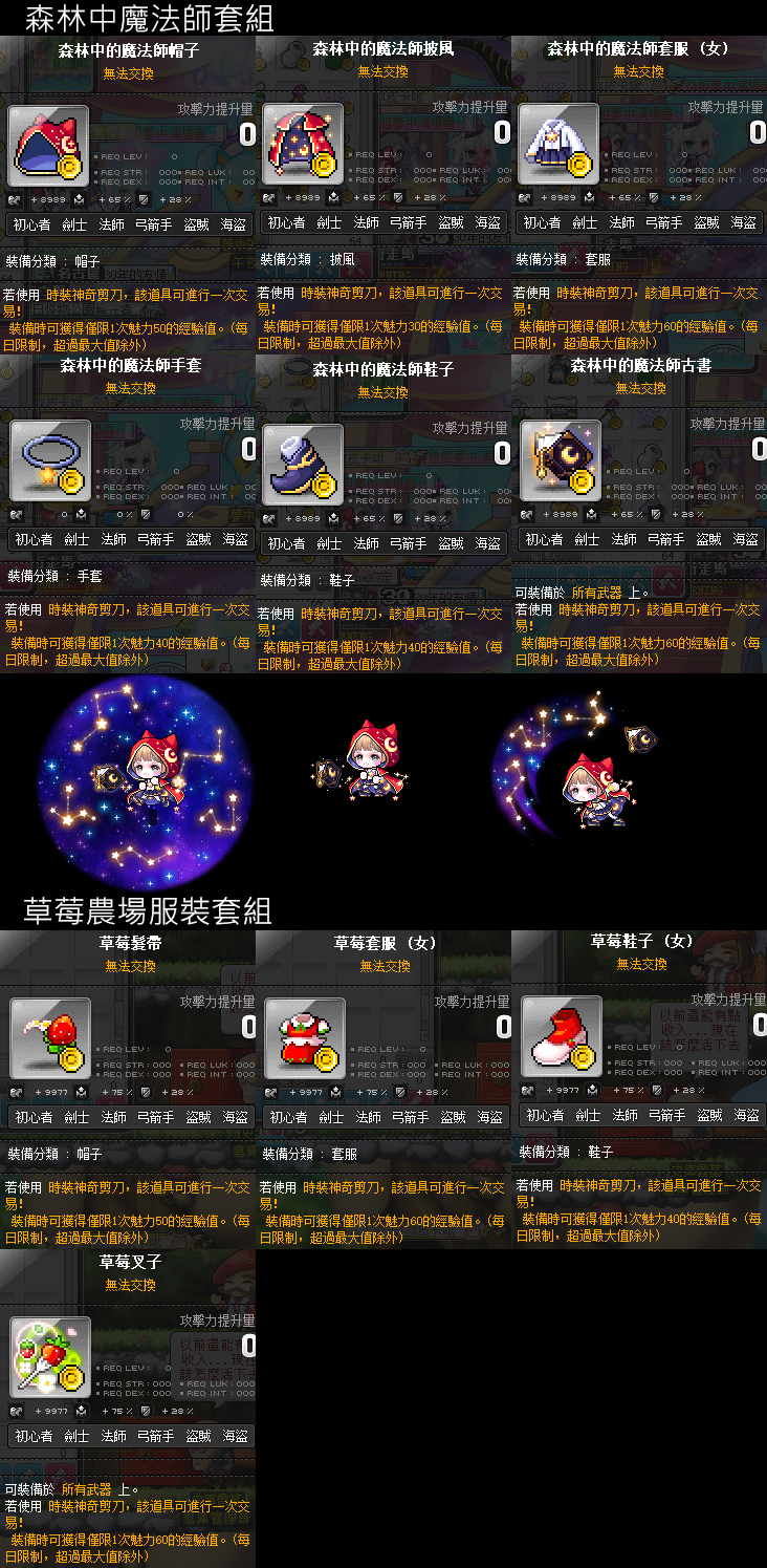 森林中魔法師套組(帽子+套服(女)+鞋子+手套+披風+武器):6件 整套2000T含刀/(帽子+套服(女)+披風+武器):4件1400含刀