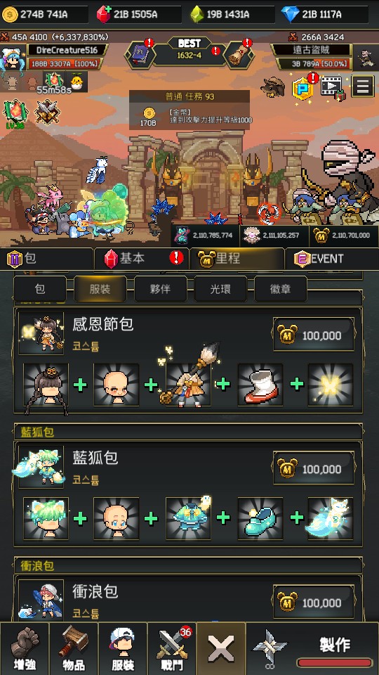 副本鑰使各21億(地下城/黑龍/橘龍/追擊/水域/突襲/礦井/祖母綠/紅寶石/金幣) = 500