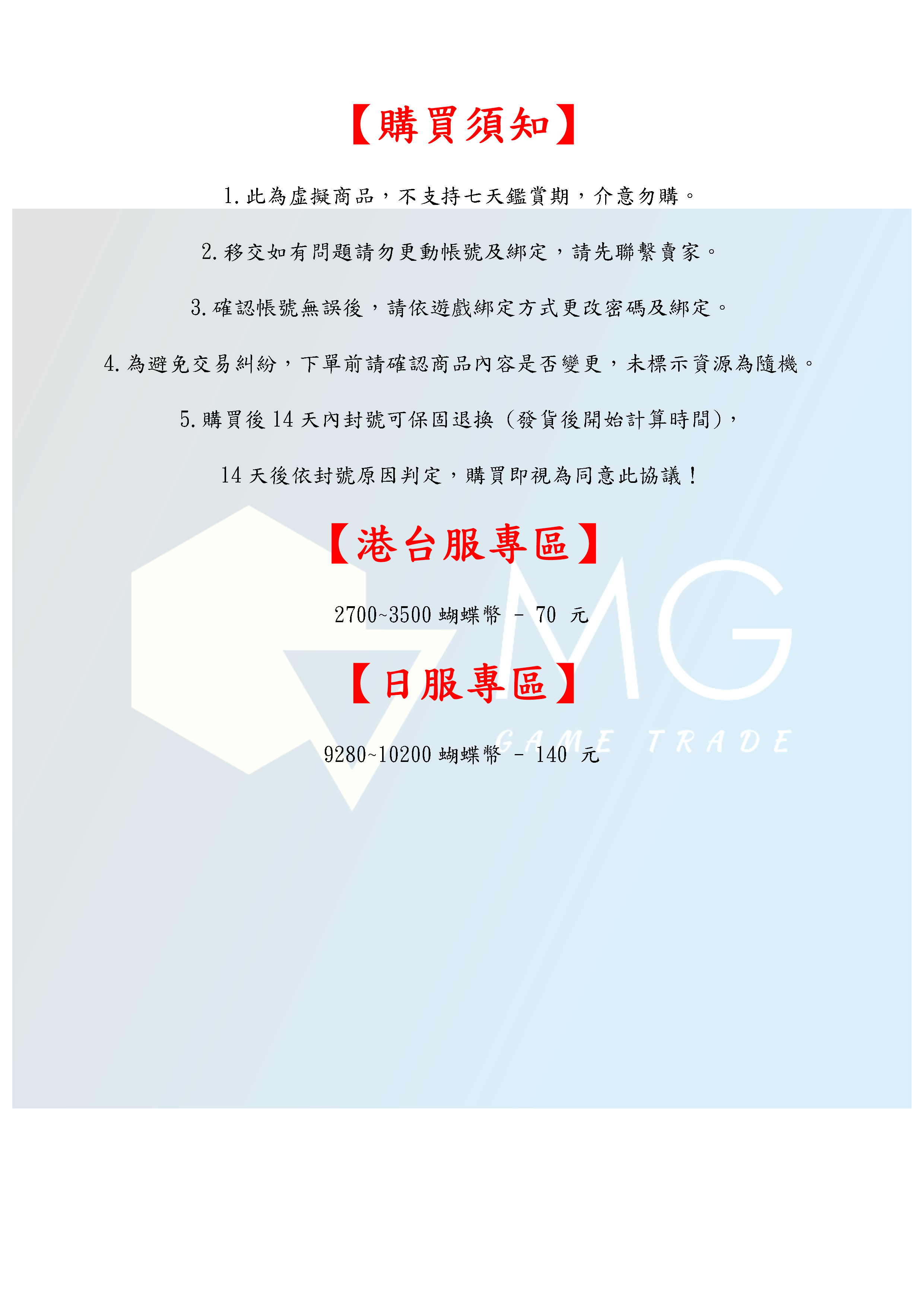 帳號 【初始號】 【MG數碼】 台服 日服 多石號 多鑽石號 初始號 自抽號 自選號
