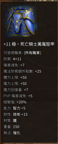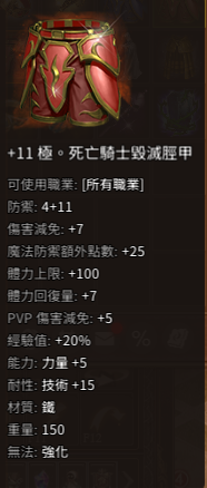 道具 變戒超能9冷燄攻擊頭盔(力量)+11極。死亡騎士(萬魔)(毀滅)脛甲