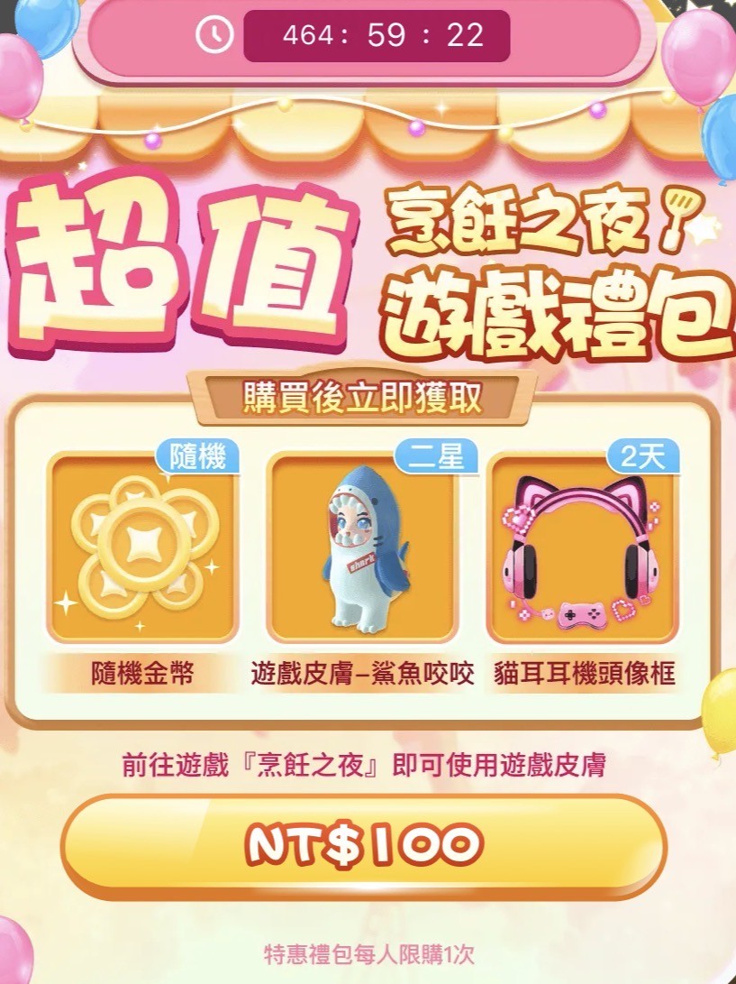 一個帳號限定一個活動禮包