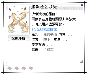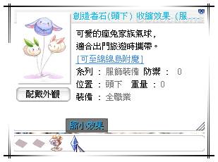 道具 炙燄魔帽風之支配者水之支配者土之支配者火之支配者闇之支配者收縮效果(頭下)縮小石