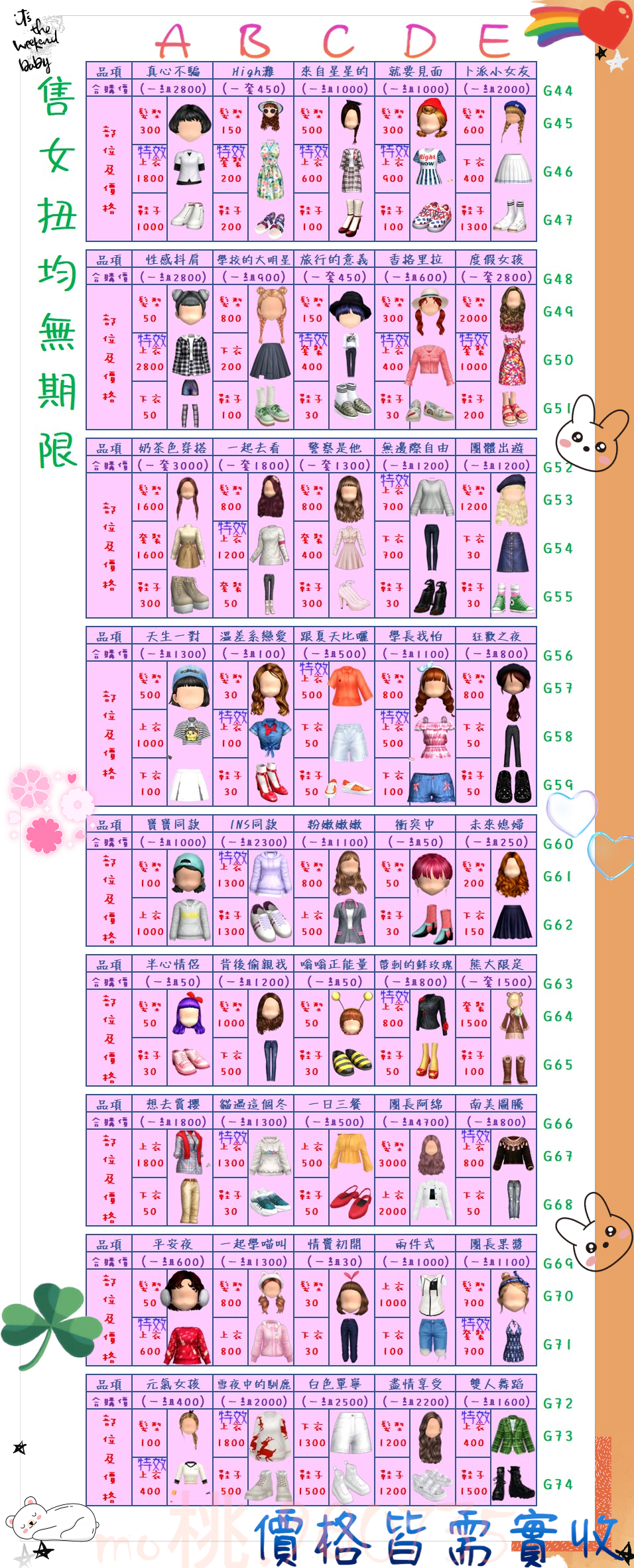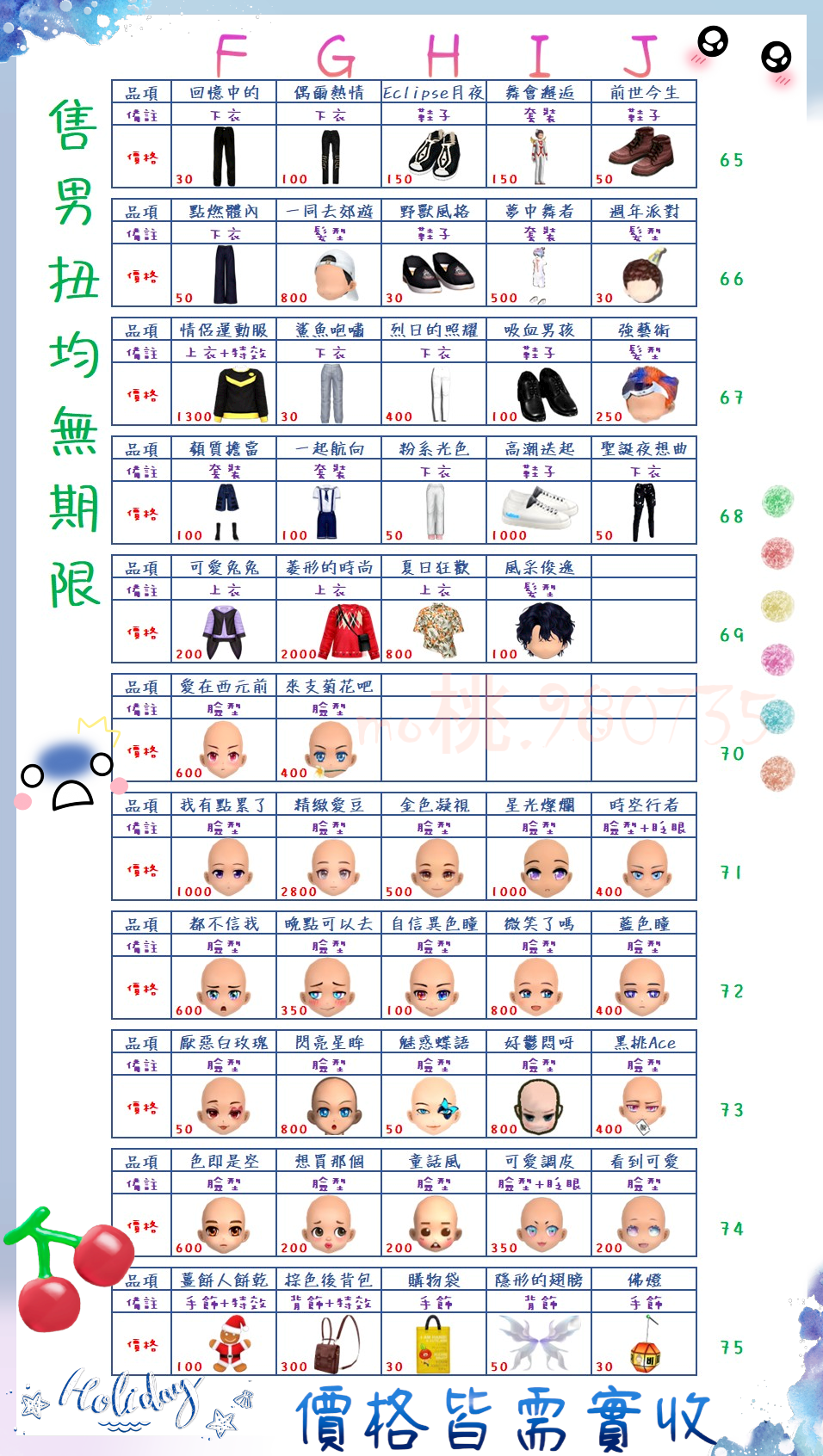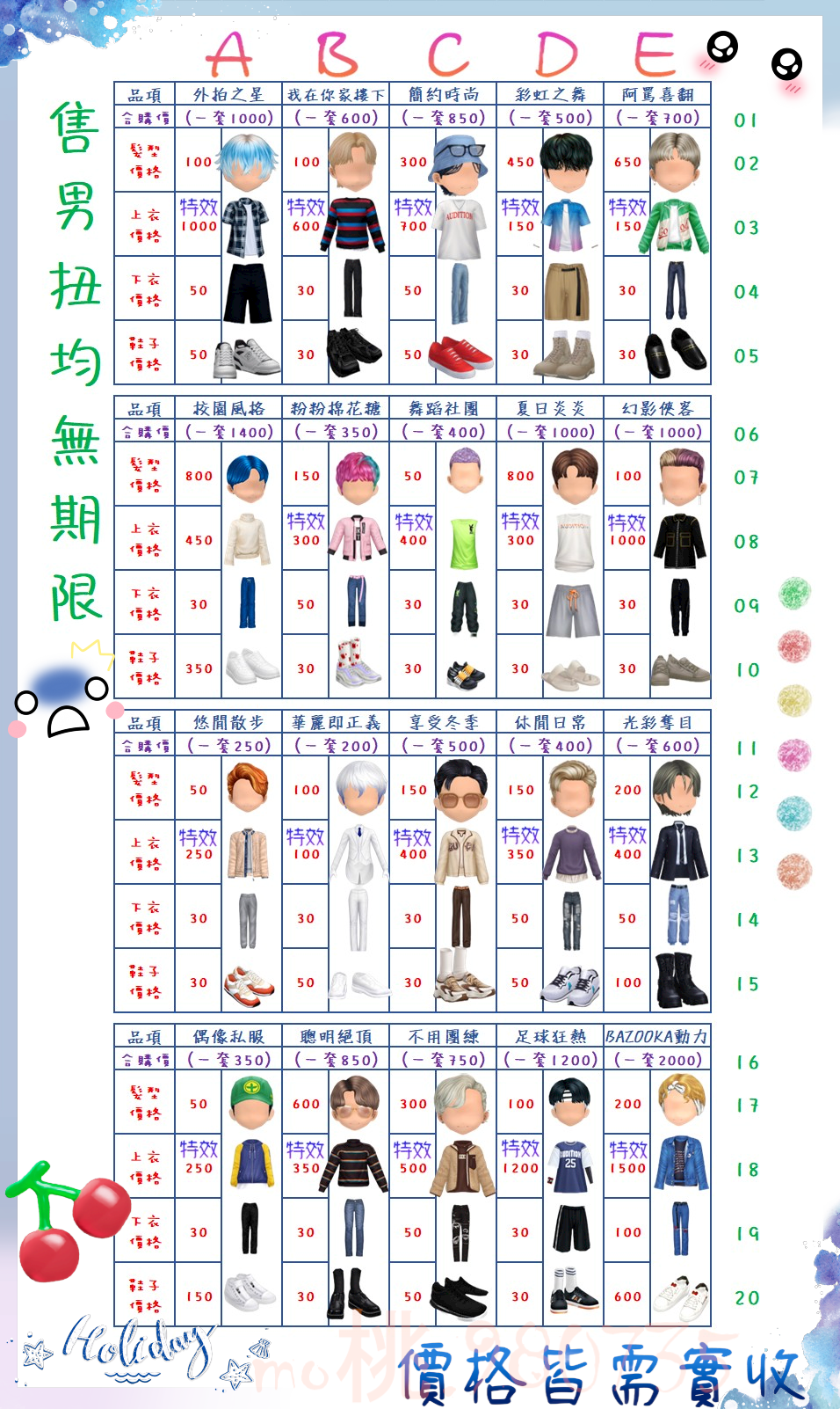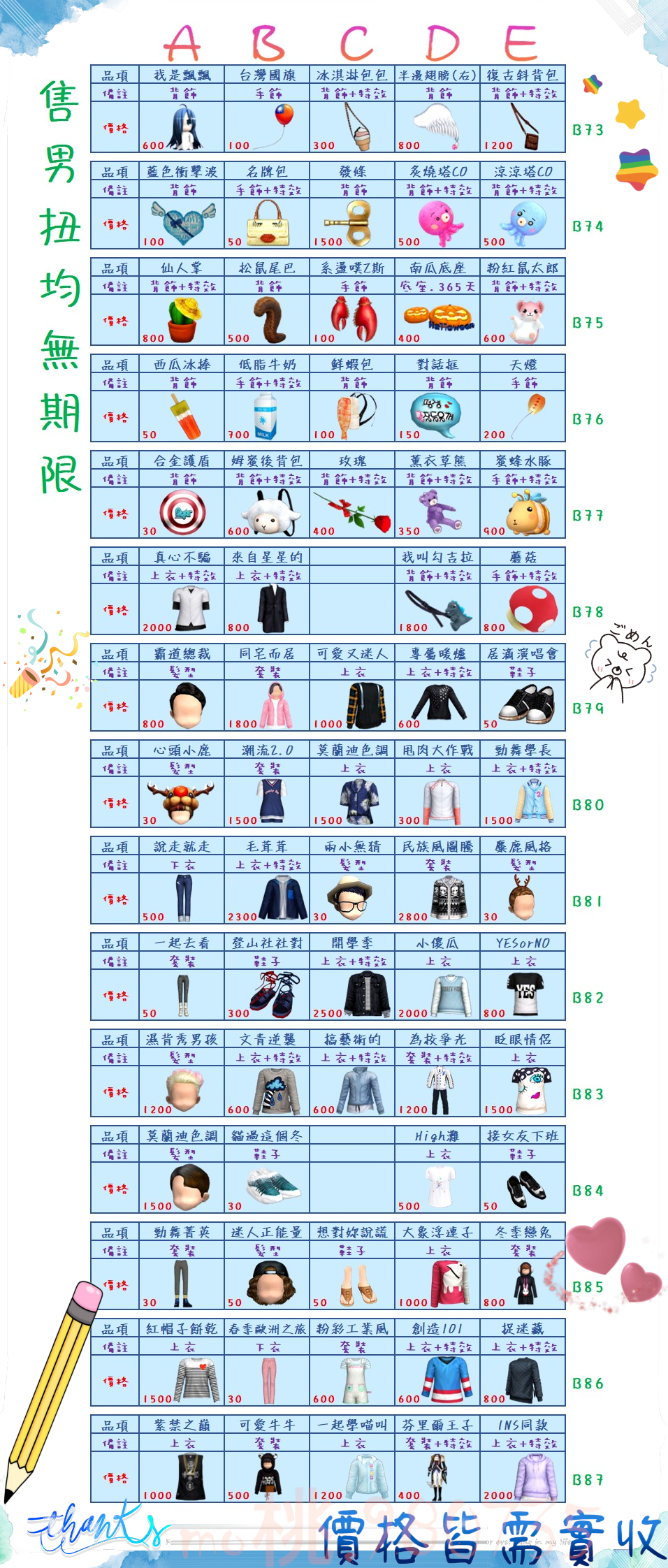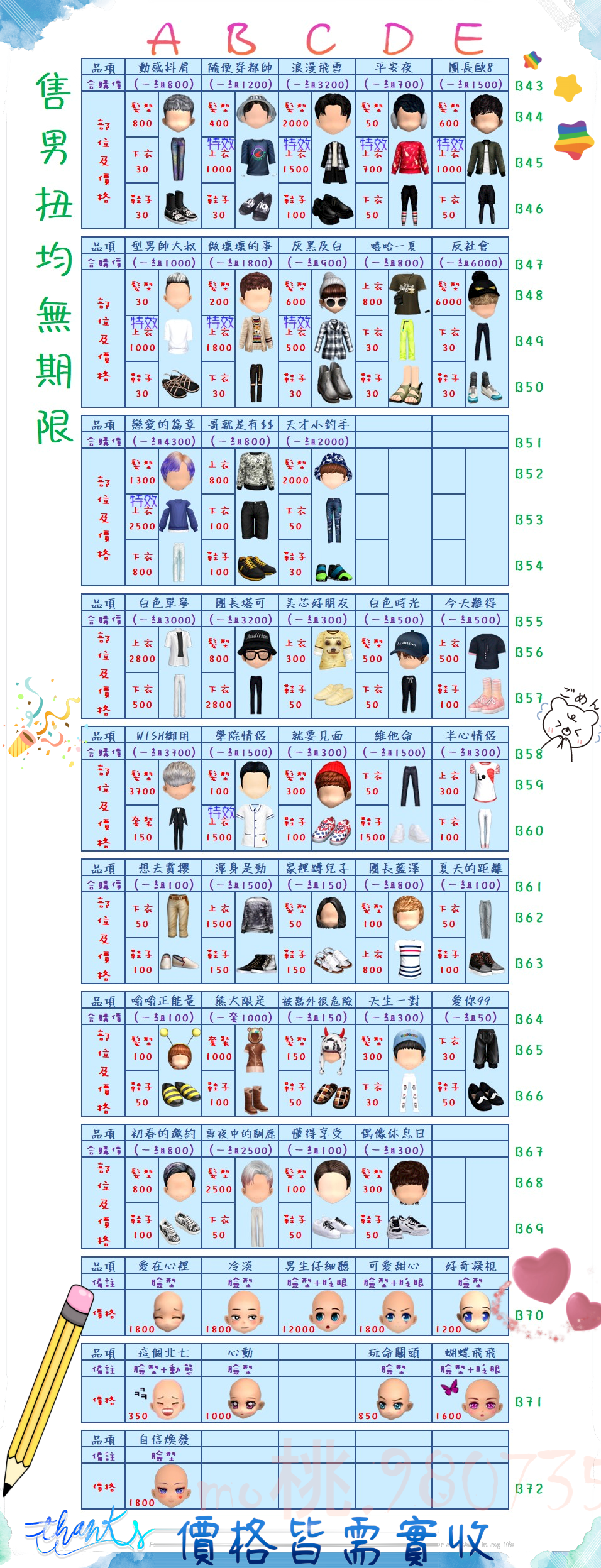 價格都是需要實收,另請先告知男生還女生的在附上編號!