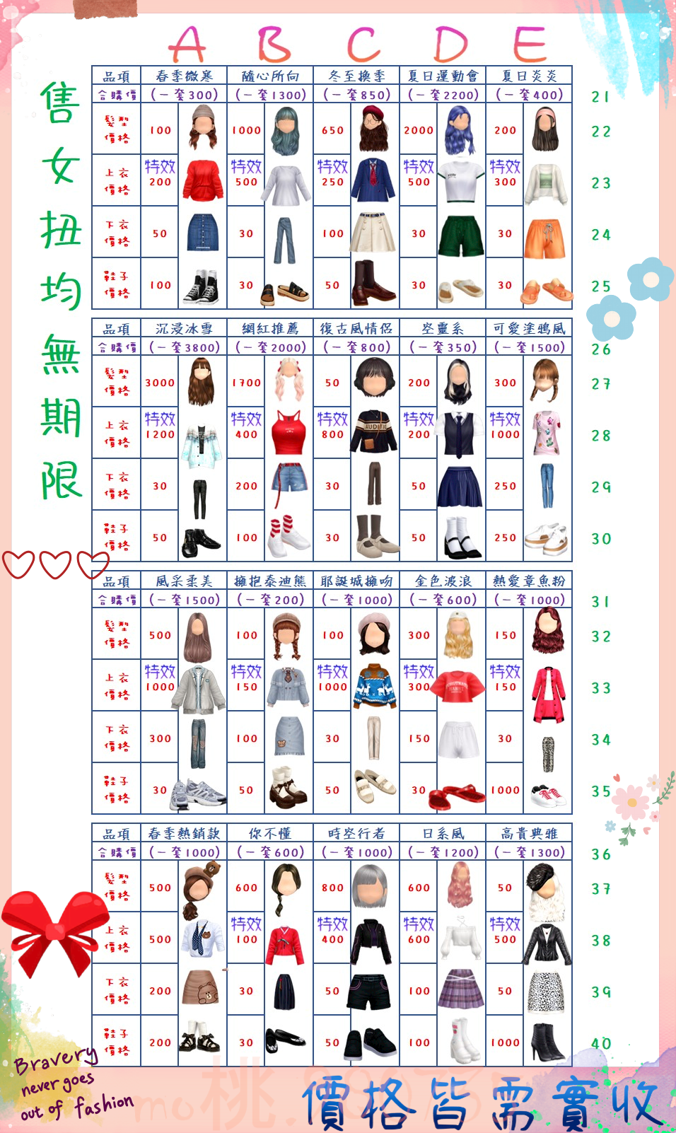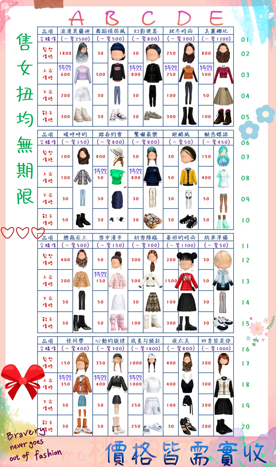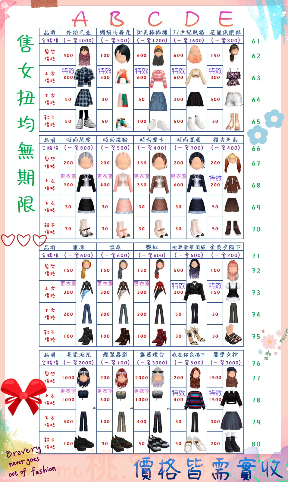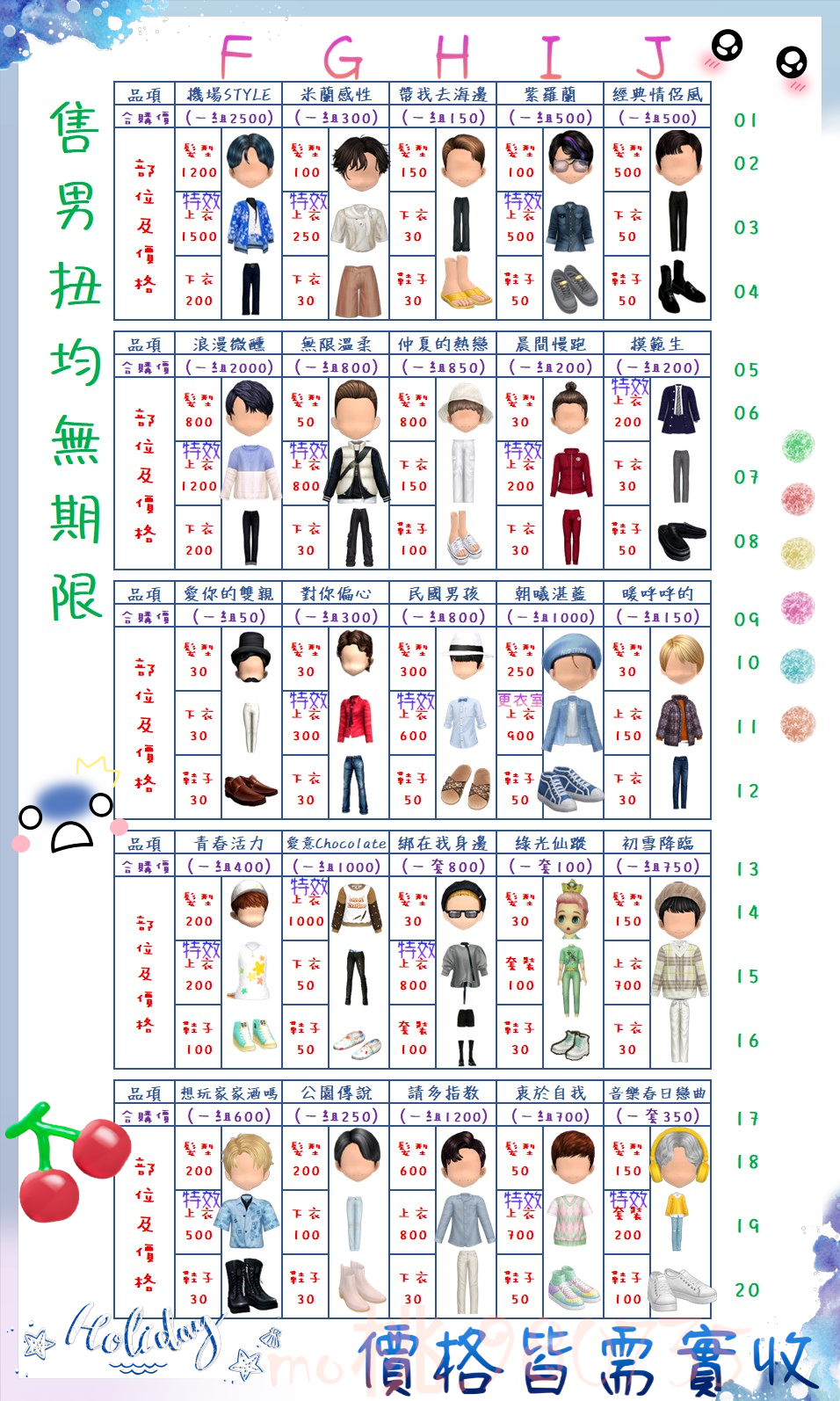 價格都是需要實收,另請先告知男生還女生的在附上編號!