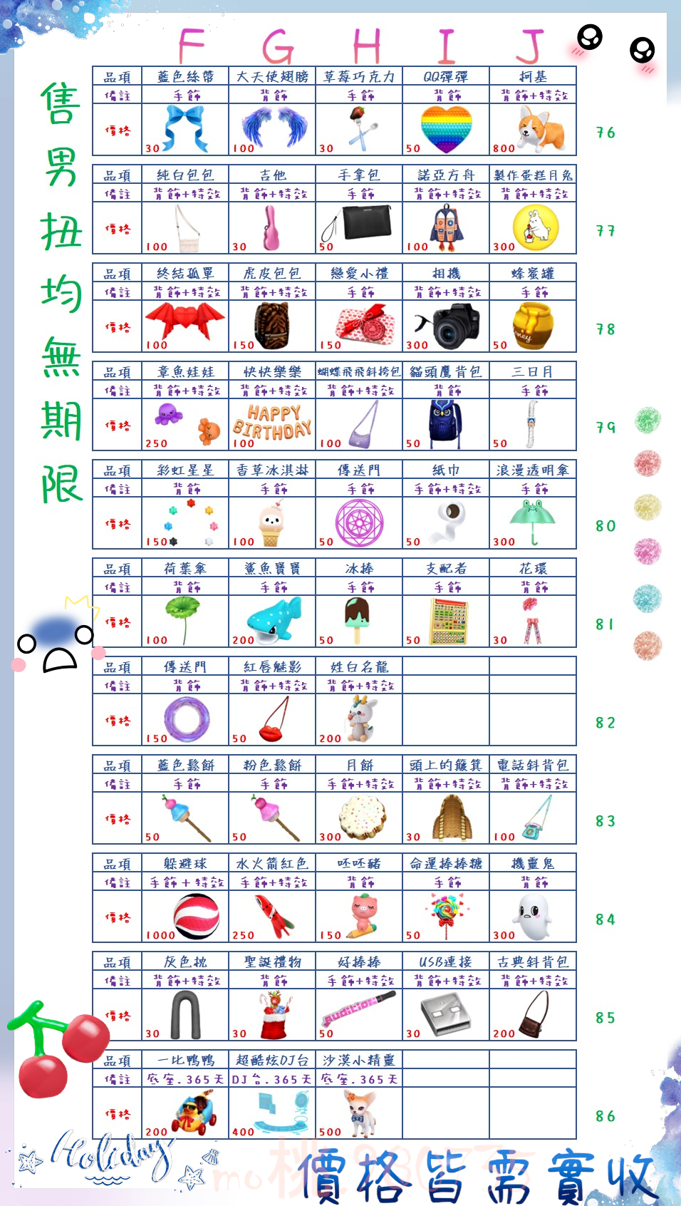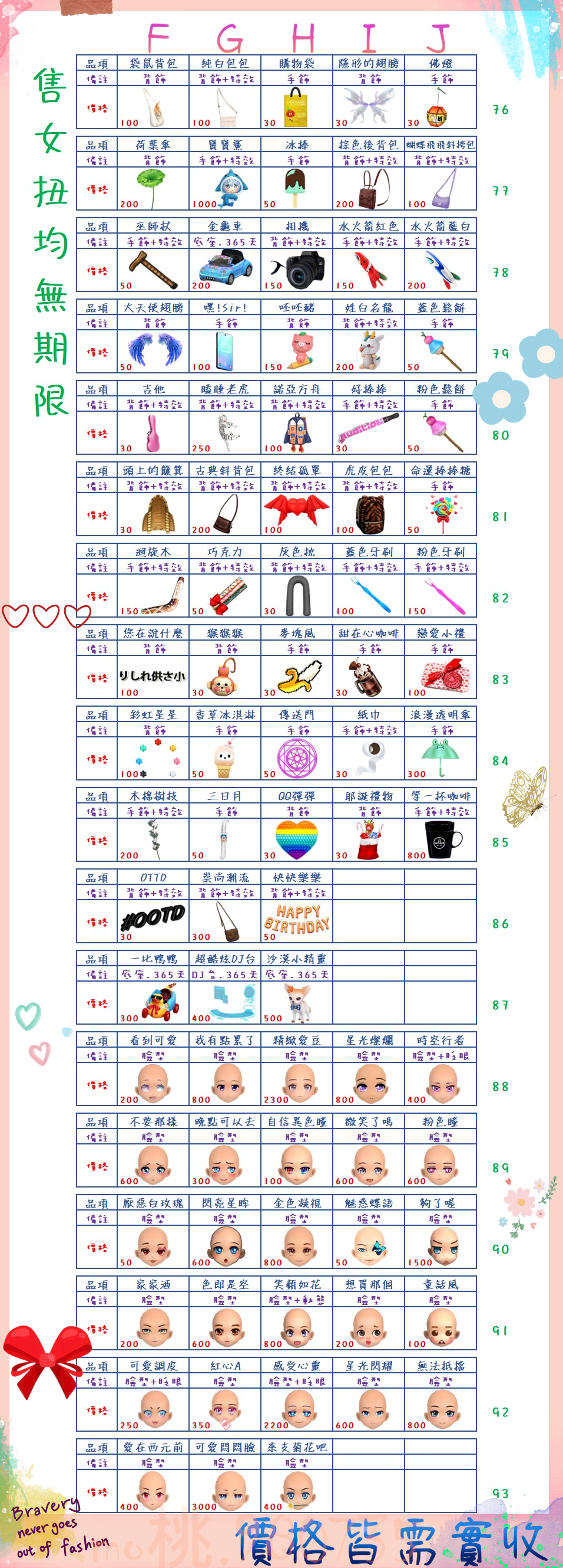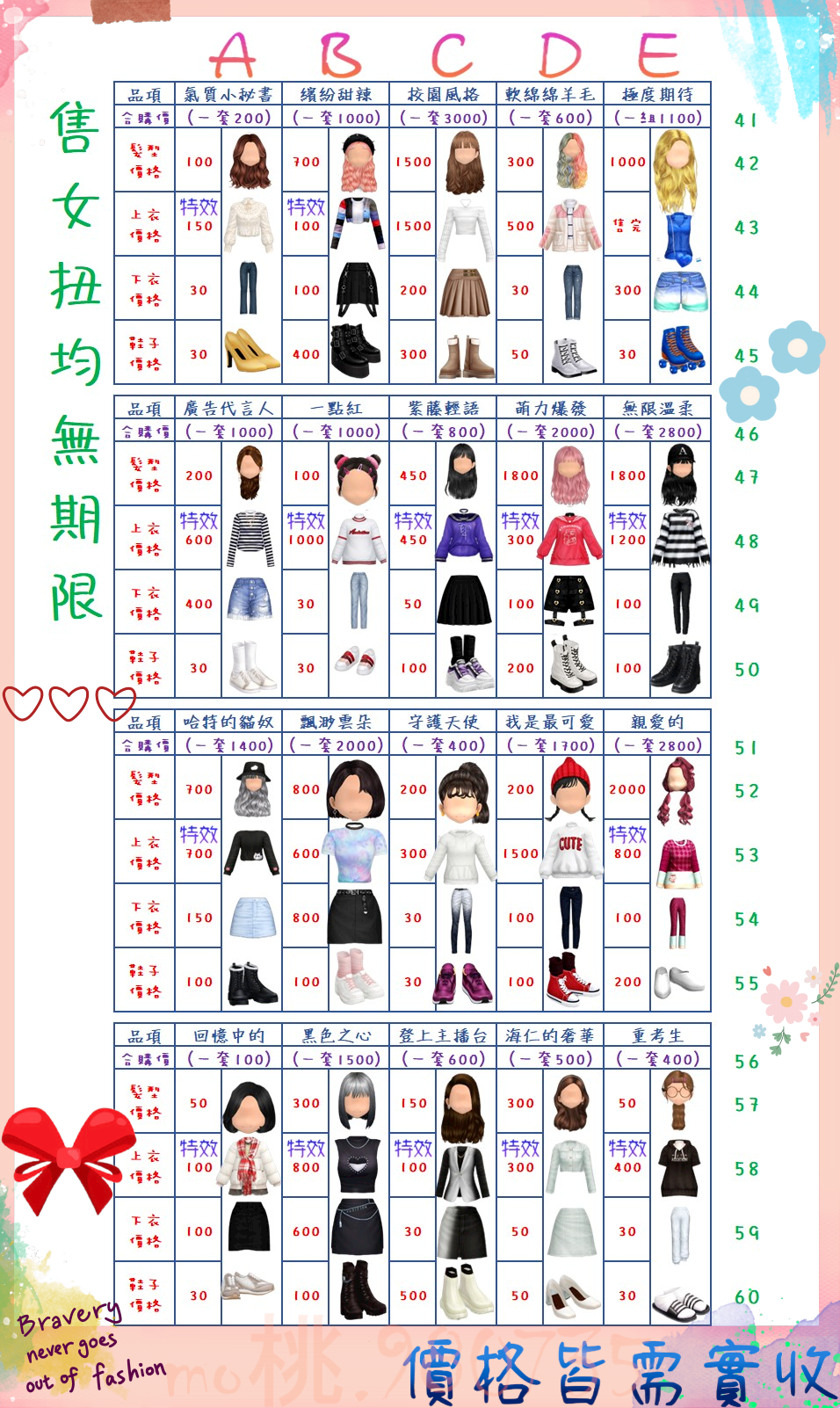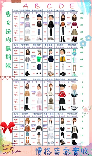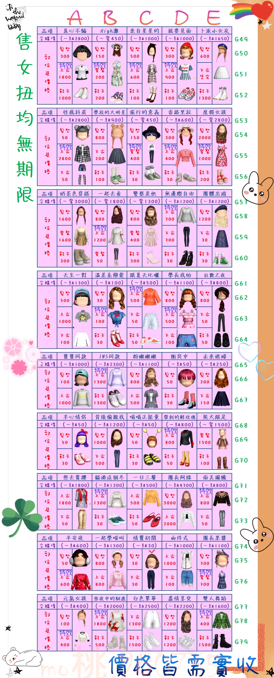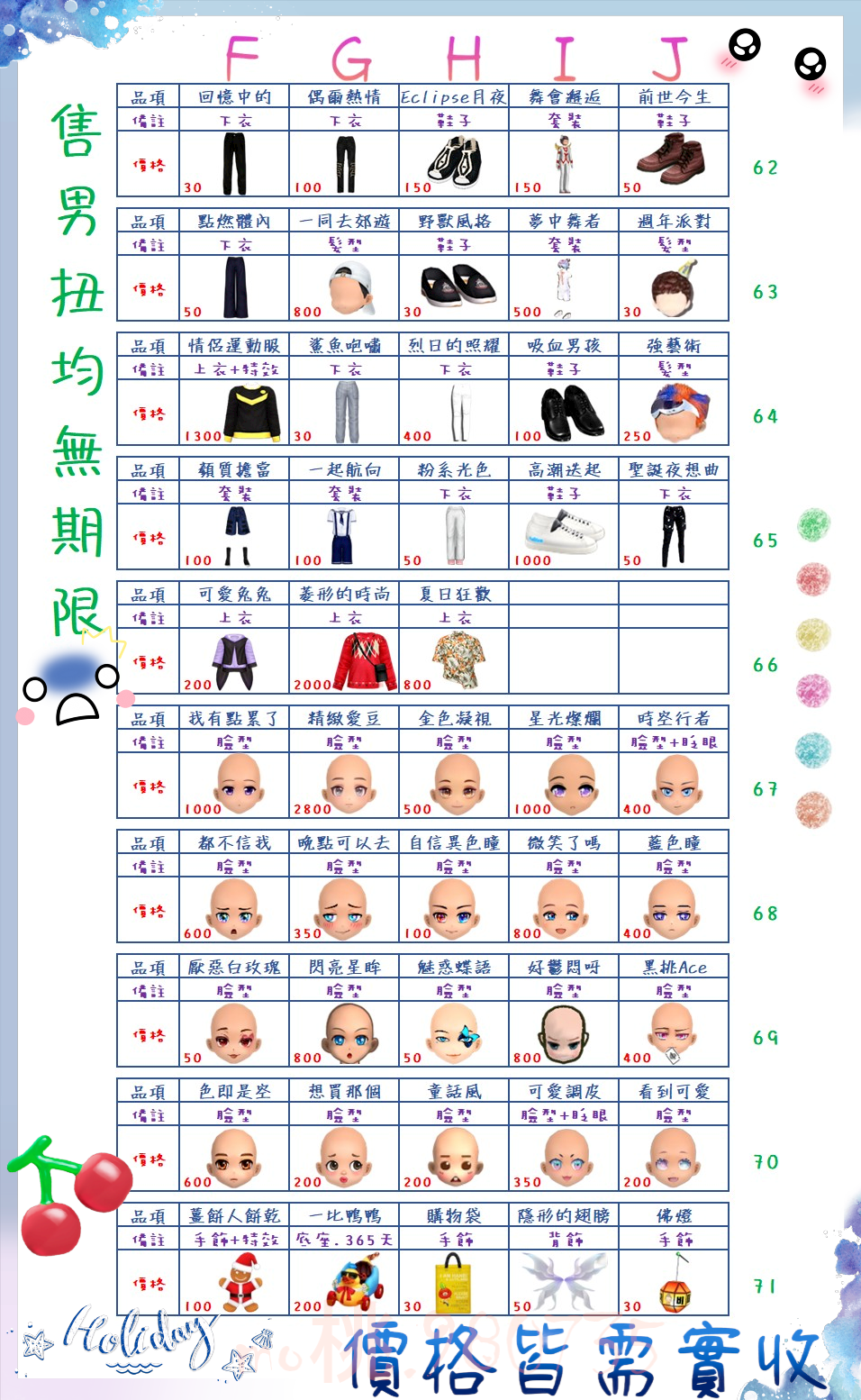 價格都是需要實收,另請先告知男生還女生的在附上編號!