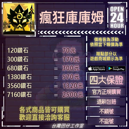 代儲【12新手禮包=106元】 🏆24H客服🏆現貨秒出🔥台灣囝仔🔥瘋狂的庫庫姆陸服🔥20萬保證金