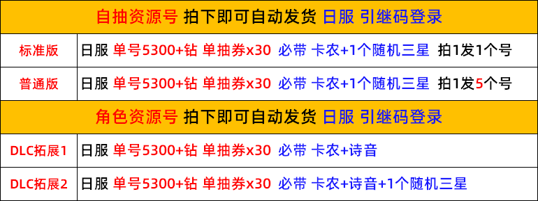 5300鑽石+單抽券*30張+卡農+詩音➡️199$(加30$直接再額外加贈一隻隨機三星)