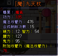 道具 140紅光手套120等戒指170戒指185/66屬杖+76攻